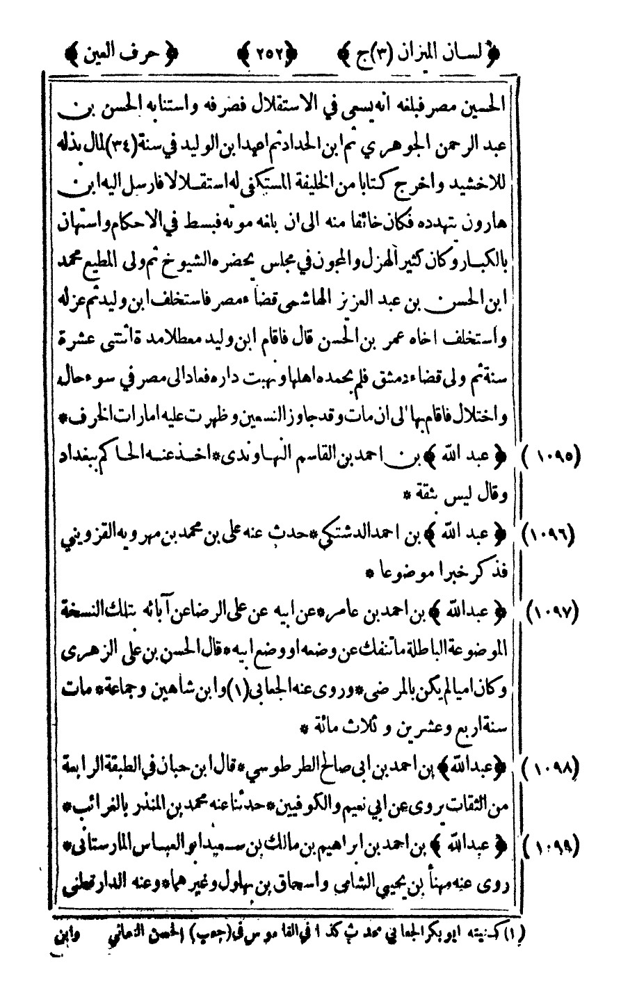 [1095] "عبد الله" ابن أحمد بن القاسم النهاوندي أخذ عنه الحاكم ببغداد وقال ليس بثقة.