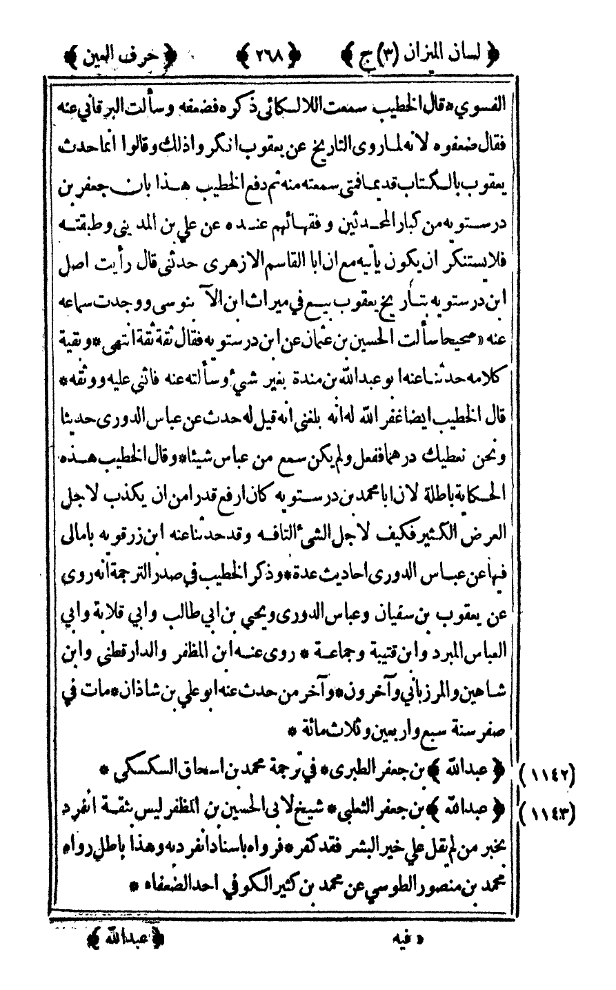 [1142] "عبد الله" ابن جعفر الطبري في ترجمة محمد بن إسحاق السكسكي.