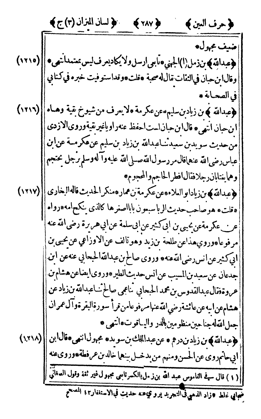 [1218] "عبد الله" ابن زياد بن درهم عن عبد الملك بن سويد مجهول انتهى قال ابن أبي حاتم روى عن الحسن ومنهم من يدخل بينهما خالد بن عرفطة وروى عنه