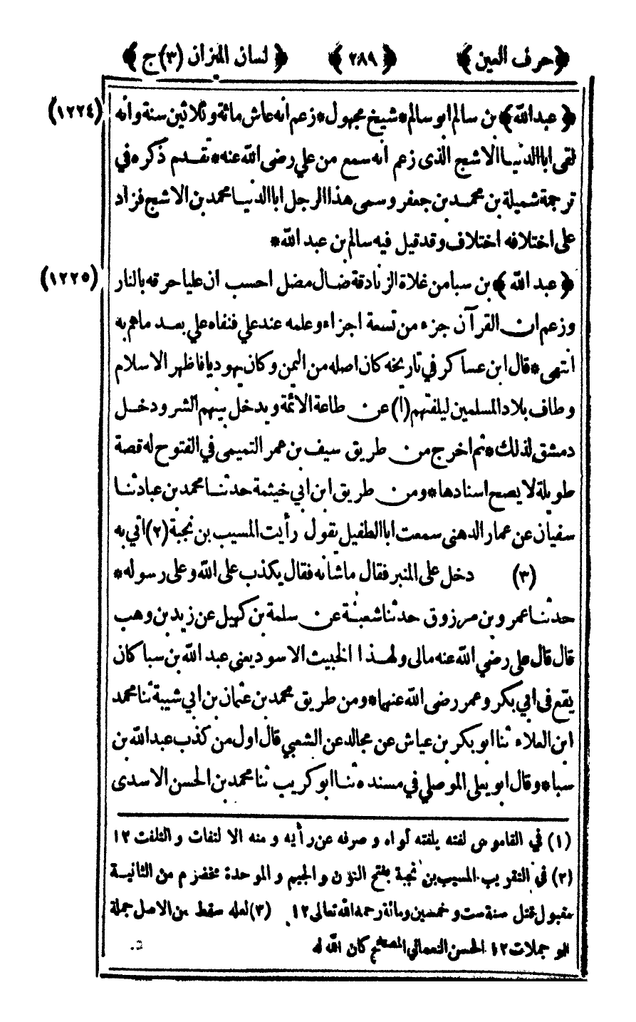 [1225] "عبد الله" ابن سبا من غلاة الزنادقة ضال مضل احسب أن عليا حرقه بالنار وزعم أن القرآن جزء من تسعة أجزاء وعلمه عند علي فنفاه علي بعد ما هم به انتهى قال ابن عساكر في تاريخه كان أصله من اليمن وكان يهوديا فأظهر الإسلام وطاف بلاد المسلمين ليلفتهم1 عن طاعة الأئمة ويدخل بينهم الشر ودخل دمشق لذلك ثم أخرج من طريق سيف بن عمر التميمي في الفتوح له قصة طويلة لا يصح إسنادها ومن طريق بن أبي خيثمة حدثنا محمد بن عباد ثنا سفيان عن عمار الدهني سمعت أبا الطفيل يقول رأيت المسيب بن نجبة2 أتى به.