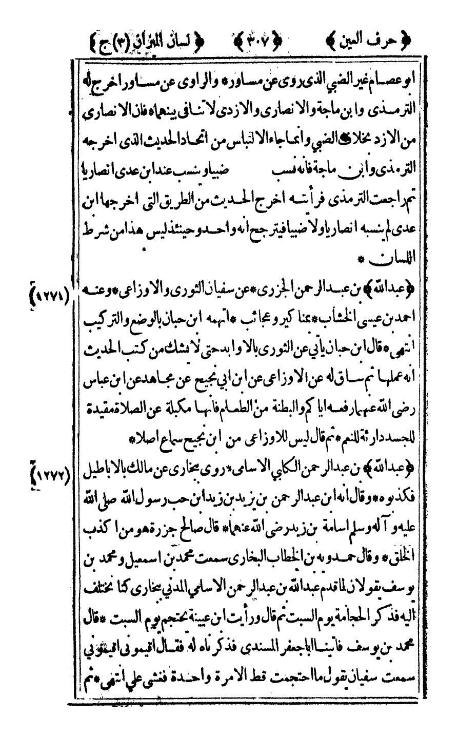 [1272] "عبد الله" ابن عبد الرحمن الكلبي الأسامي روى ببخارى عن مالك بالأباطيل فكذبوه وقال أنه بن عبد الرحمن بن يزيد بن زيد بن حب رسول الله صلى الله عليه وآله وسلم أسامة بن زيد رضي الله عنهما قال صالح جزرة هو من أكذب الخلق وقال حمدويه بن الخطاب البخاري سمعت محمد بن إسماعيل ومحمد بن يوسف يقولان لما قدم عبد الله ابن عبد الرحمن الأسامي المدني ببخارى كنا نختلف إليه فذكر الحجامة يوم السبت ثم قال ورأيت بن عيينة يحتجم يوم السبت قال محمد بن يوسف فأتينا أبا جعفر المسندي فذكرناه فقال أقيموني أقيموني سمعت سفيان يقول ما احتجمت قط إلا مرة واحدة فغشي علي انتهى ثم