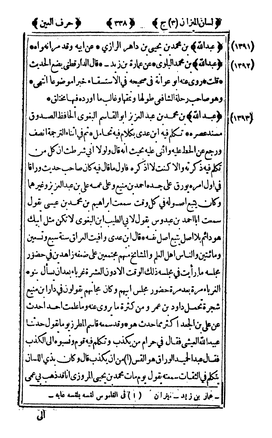 [1391] "عبد الله" ابن محمد بن يحيى بن داهر الرازي عن أبيه وقد مر أنه واه.