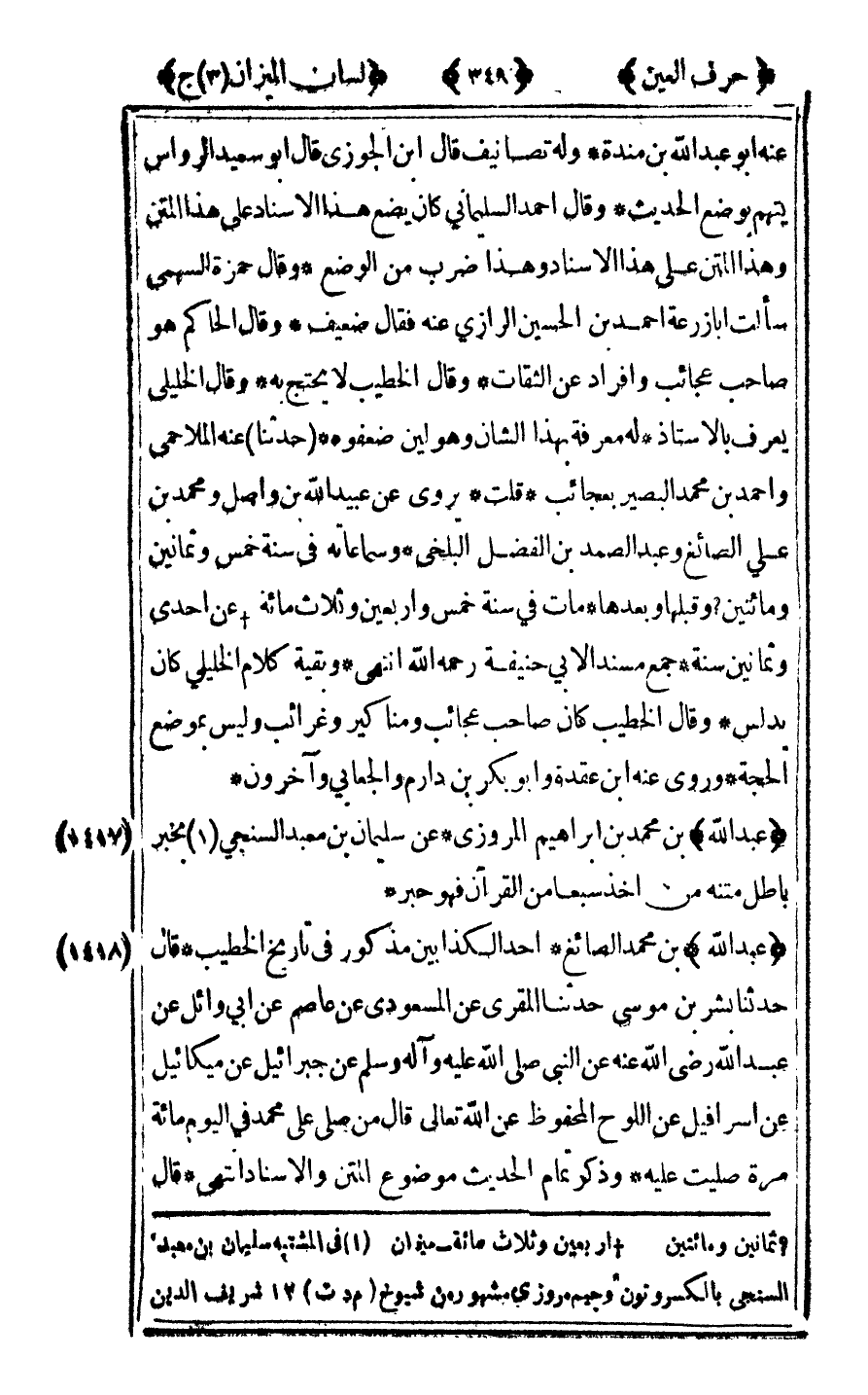 [1417] "عبد الله" ابن محمد بن إبراهيم المروزي عن سليمان ابن معبد السنجي3 بخبر باطل متنه من أخذ سبعا من القرآن فهو حبر.
