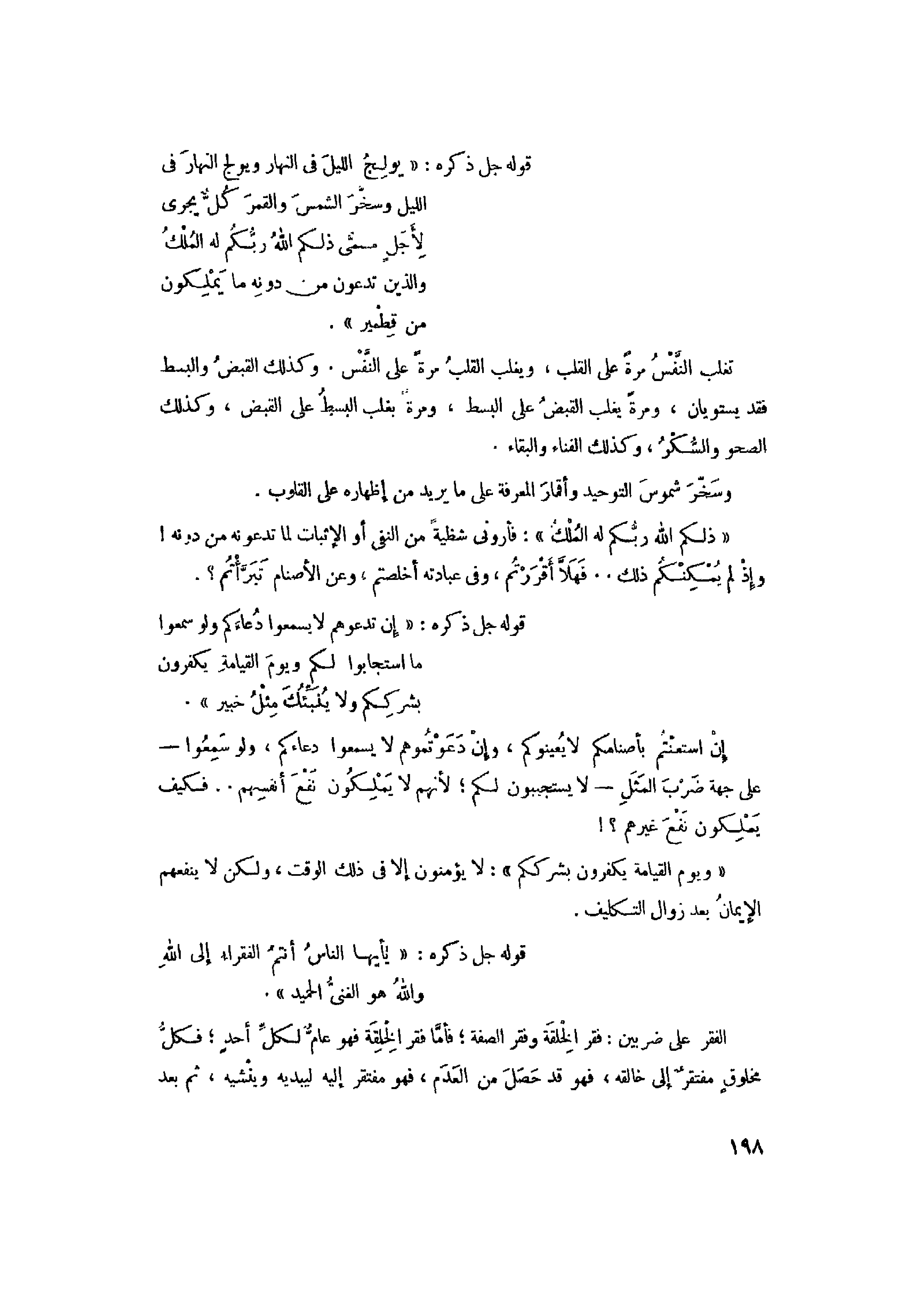 تغلب النّفس مرة على القلب، ويغلب القلب مرة على النّفس. وكذلك القبض والبسط فقد يستويان، ومرة يغلب القبض على البسط، ومرة يغلب البسط على القبض، وكذلك الصحو والسّكر، وكذلك الفناء والبقاء.