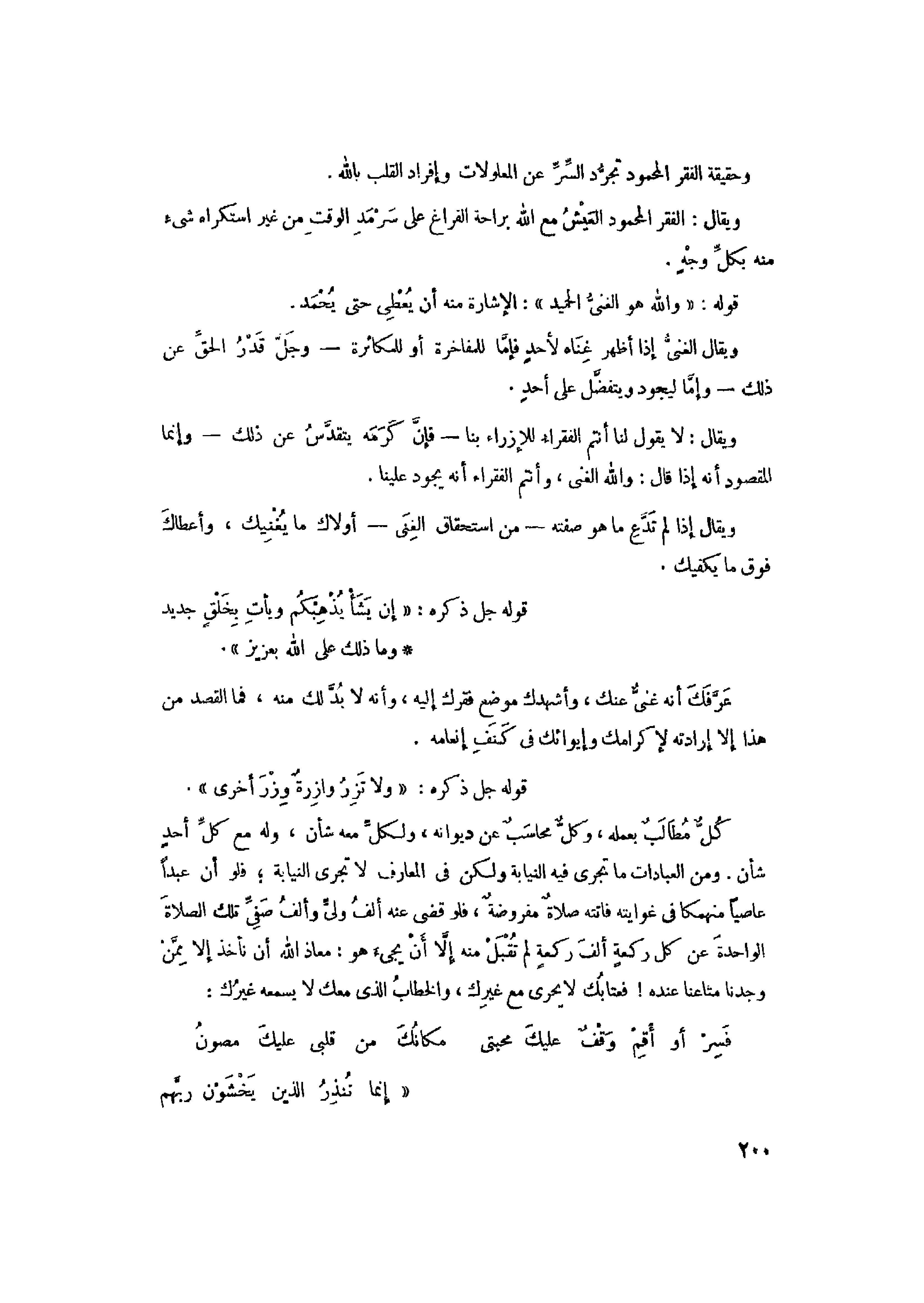 وحقيقة الفقر المحمود تجرّد السّرّ عن المعلولات وإفراد القلب بالله.
