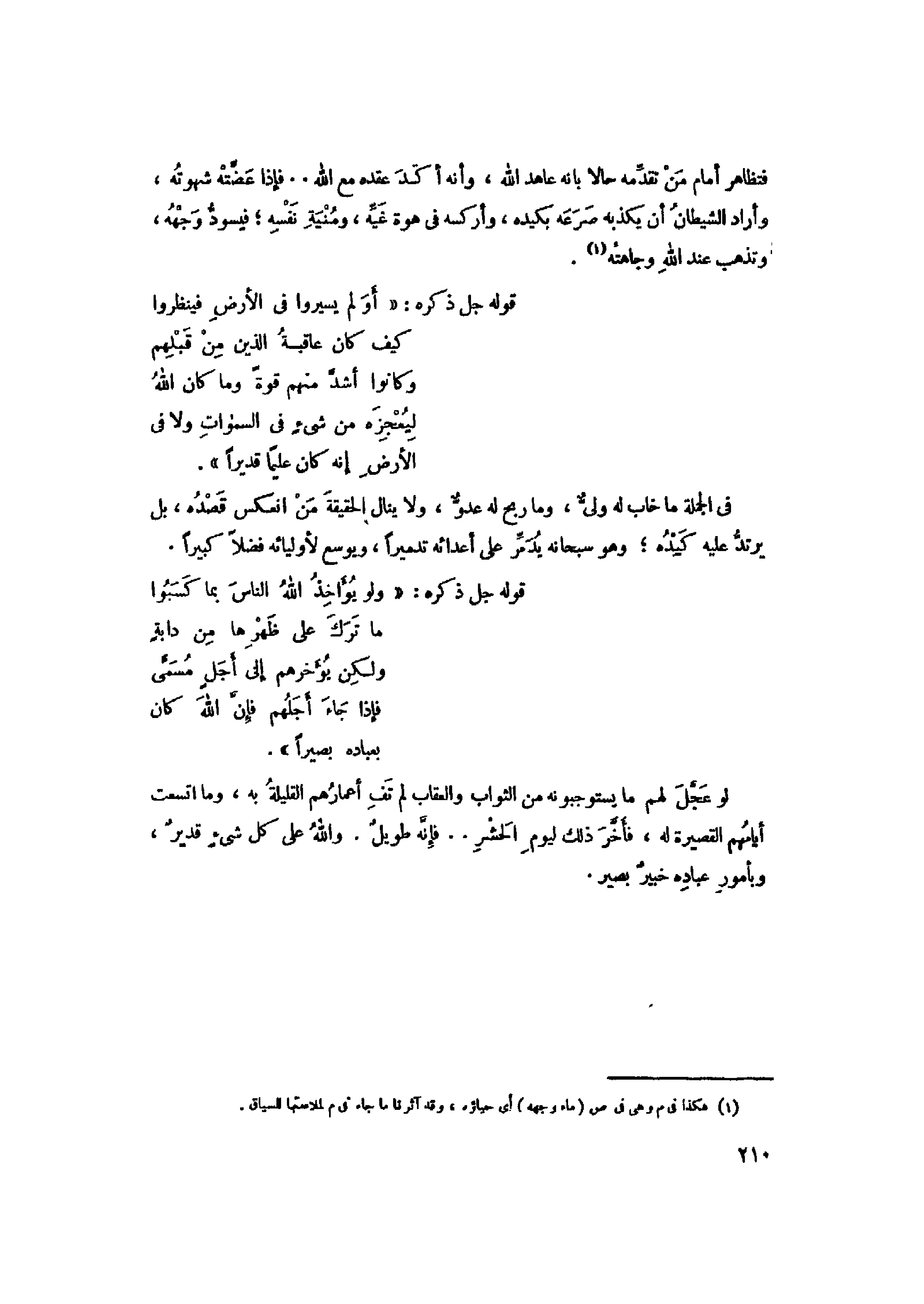 وَلَوْ يُؤاخِذُ اللَّهُ النَّاسَ بِما كَسَبُوا ما تَرَكَ عَلى ظَهْرِها مِنْ دَابَّةٍ وَلكِنْ يُؤَخِّرُهُمْ إِلى أَجَلٍ مُسَمًّى فَإِذا جاءَ أَجَلُهُمْ فَإِنَّ اللَّهَ كانَ بِعِبادِهِ بَصِيراً (45)