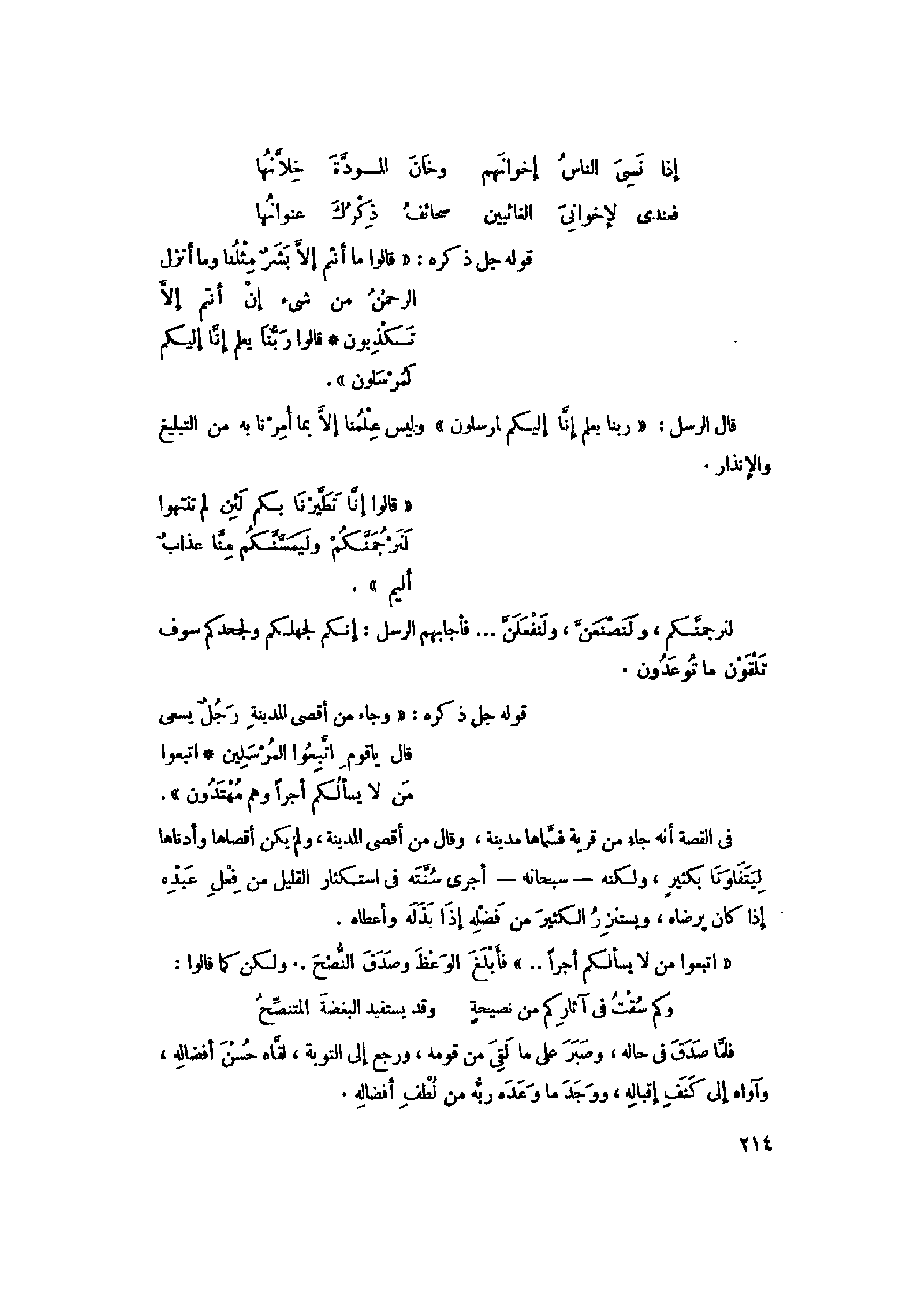 وَجاءَ مِنْ أَقْصَا الْمَدِينَةِ رَجُلٌ يَسْعى قالَ يا قَوْمِ اتَّبِعُوا الْمُرْسَلِينَ (20) اتَّبِعُوا مَنْ لا يَسْئَلُكُمْ أَجْراً وَهُمْ مُهْتَدُونَ (21)