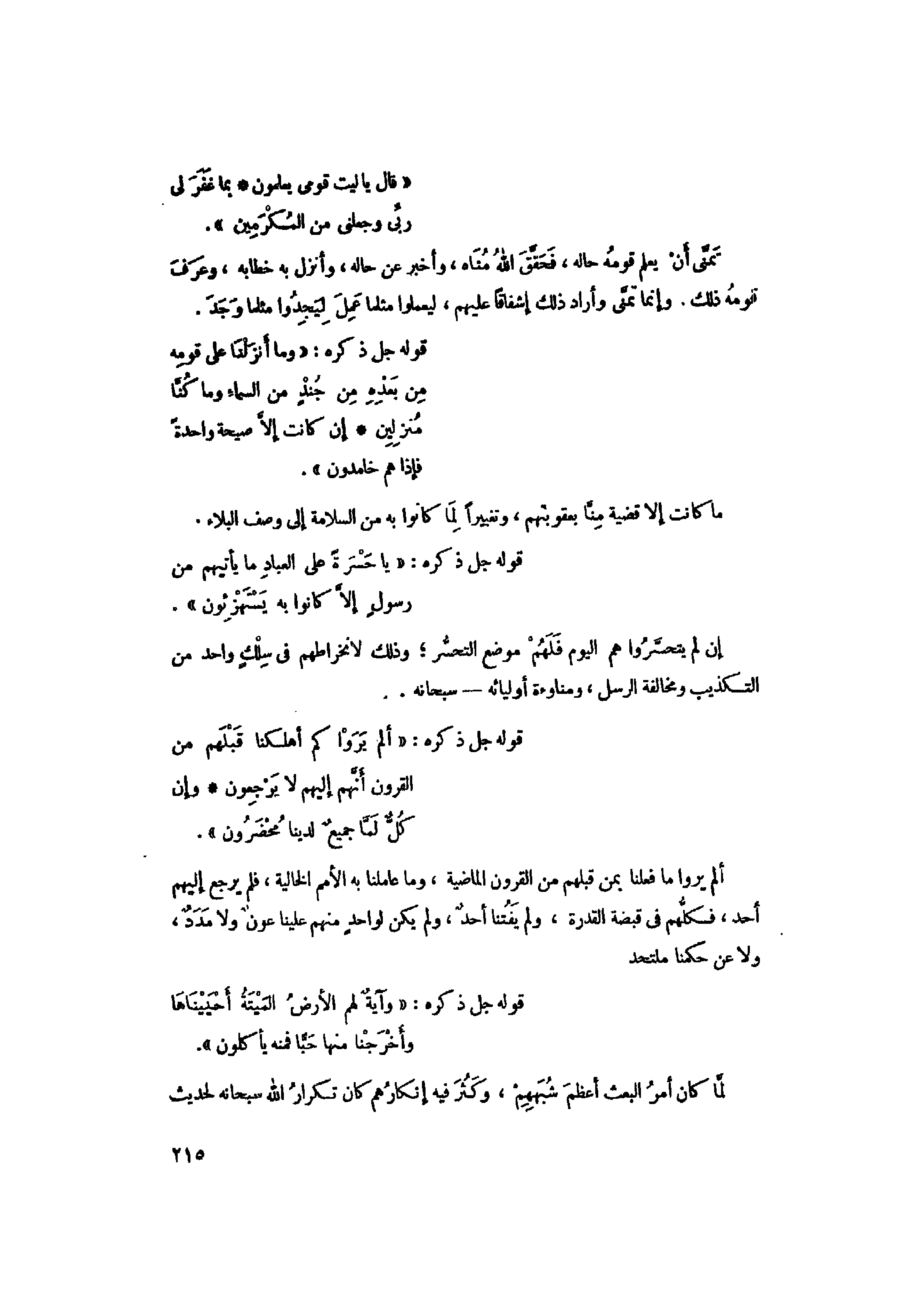 تمنّى أن يعلم قومه حاله، فحقّق الله مناه، وأخبر عن حاله، وأنزل به خطابه، وعرف قومه ذلك. وإنما تمنّى وأراد ذلك إشفاقا عليهم، ليعملوا مثلما عمل ليجدوا مثلما وجد.
