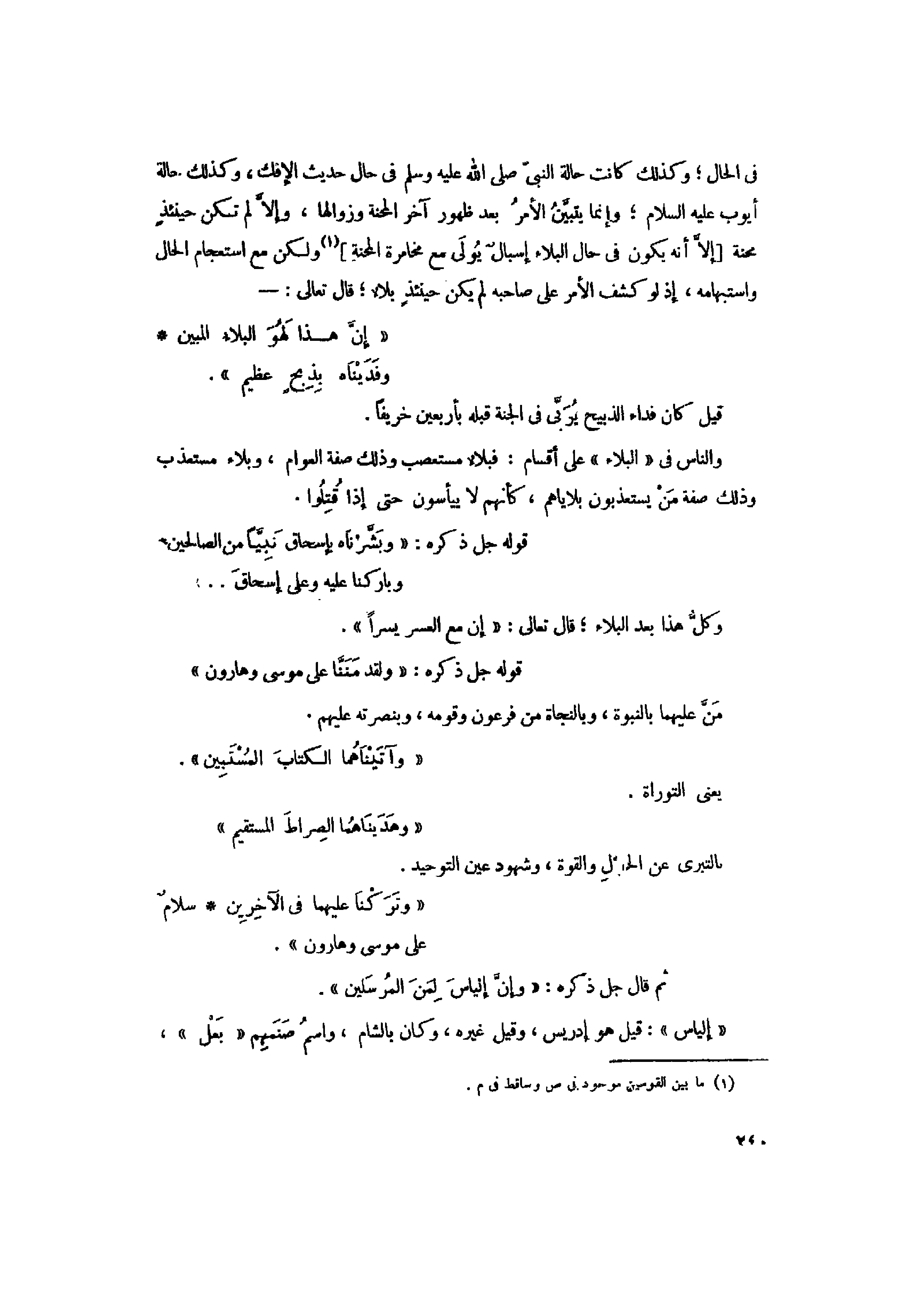 ولكن مع استعجام الحال واستبهامه، إذ لو كشف الأمر على صاحبه لم يكن حينئذ بلاء قال تعالى: - «إِنَّ هذا لَهُوَ الْبَلاءُ الْمُبِينُ وَفَدَيْناهُ بِذِبْحٍ عَظِيمٍ» قيل كان فداء الذبيح يربّى في الجنة قبله بأربعين خريفا.