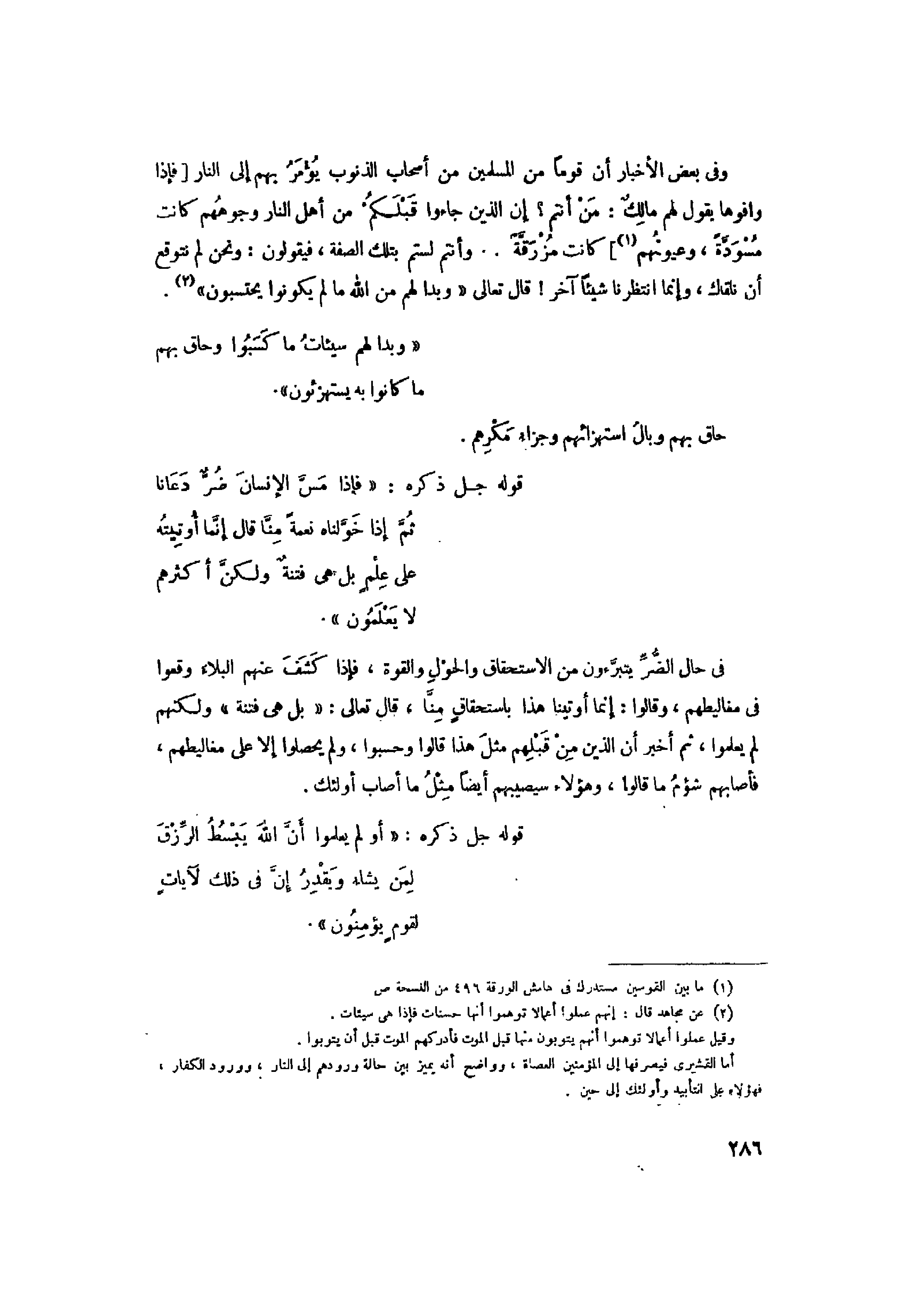 فَإِذا مَسَّ الْإِنْسانَ ضُرٌّ دَعانا ثُمَّ إِذا خَوَّلْناهُ نِعْمَةً مِنَّا قالَ إِنَّما أُوتِيتُهُ عَلى عِلْمٍ بَلْ هِيَ فِتْنَةٌ وَلكِنَّ أَكْثَرَهُمْ لا يَعْلَمُونَ (49) قَدْ قالَهَا الَّذِينَ مِنْ قَبْلِهِمْ فَما أَغْنى عَنْهُمْ ما كانُوا يَكْسِبُونَ (50) فَأَصابَهُمْ سَيِّئاتُ ما كَسَبُوا وَالَّذِينَ ظَلَمُوا مِنْ هؤُلاءِ سَيُصِيبُهُمْ سَيِّئاتُ ما كَسَبُوا وَما هُمْ بِمُعْجِزِينَ (51)