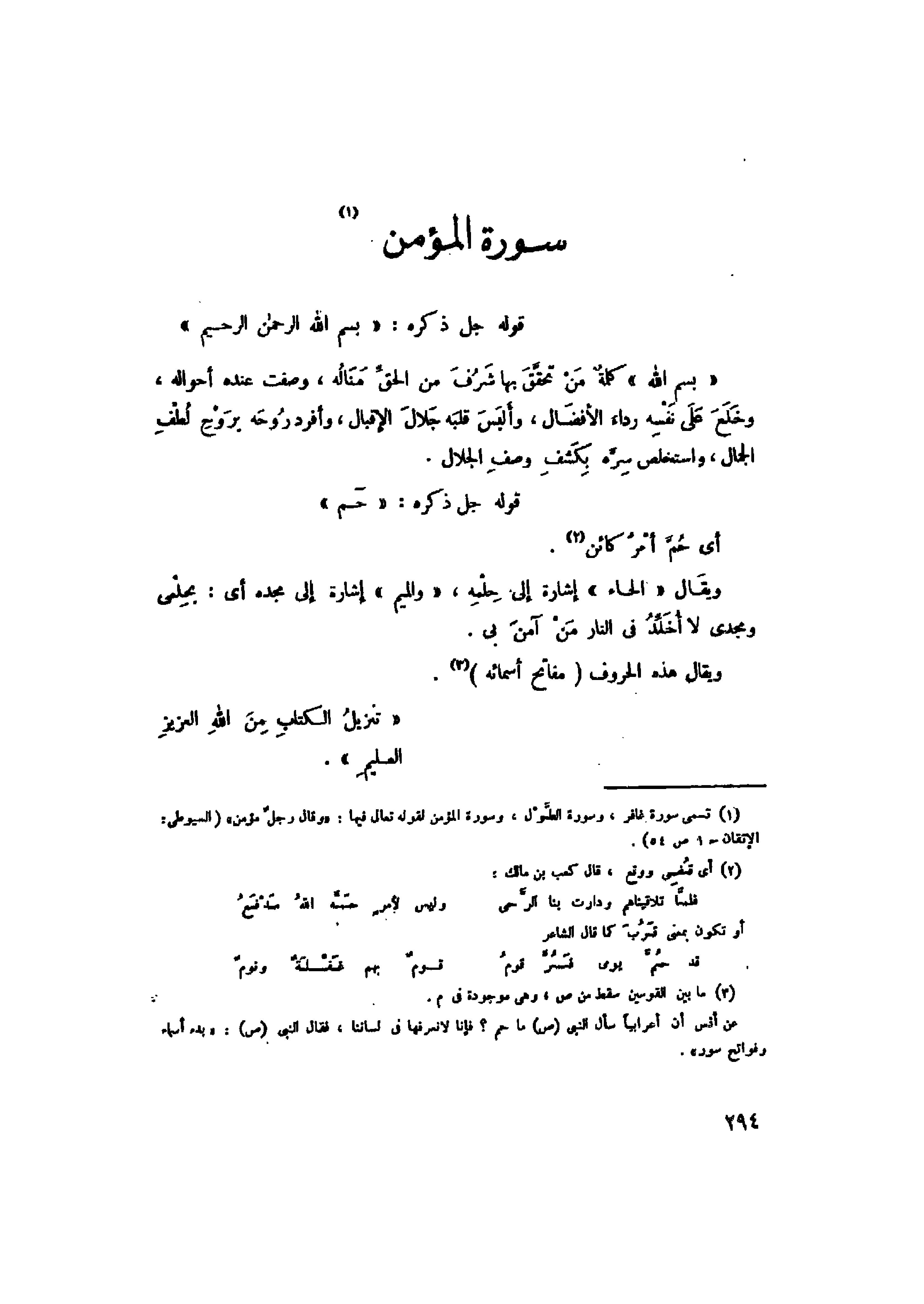 (1) تسمى سورة غافر، وسورة الطّمول، وسورة المؤمن لقوله تعالى فيها: «وَقالَ رَجُلٌ مُؤْمِنٌ» (السيوطي: