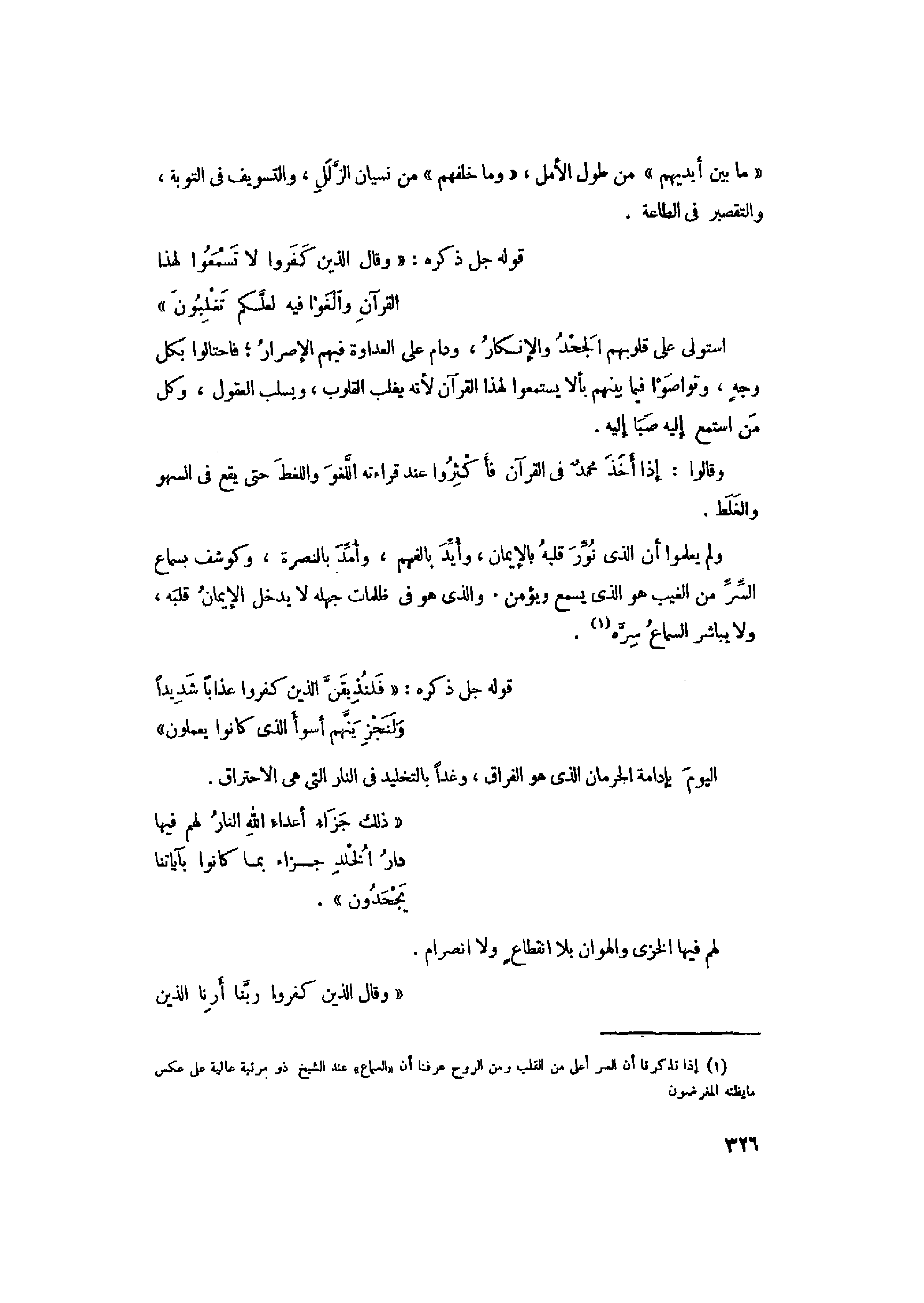 (1) إذا تذكرنا أن السر أعلى من القلب ومن الروح عرفنا أن «السماع» عند الشيخ ذو مرتبة عالية على عكس ما يظنه المغرضون