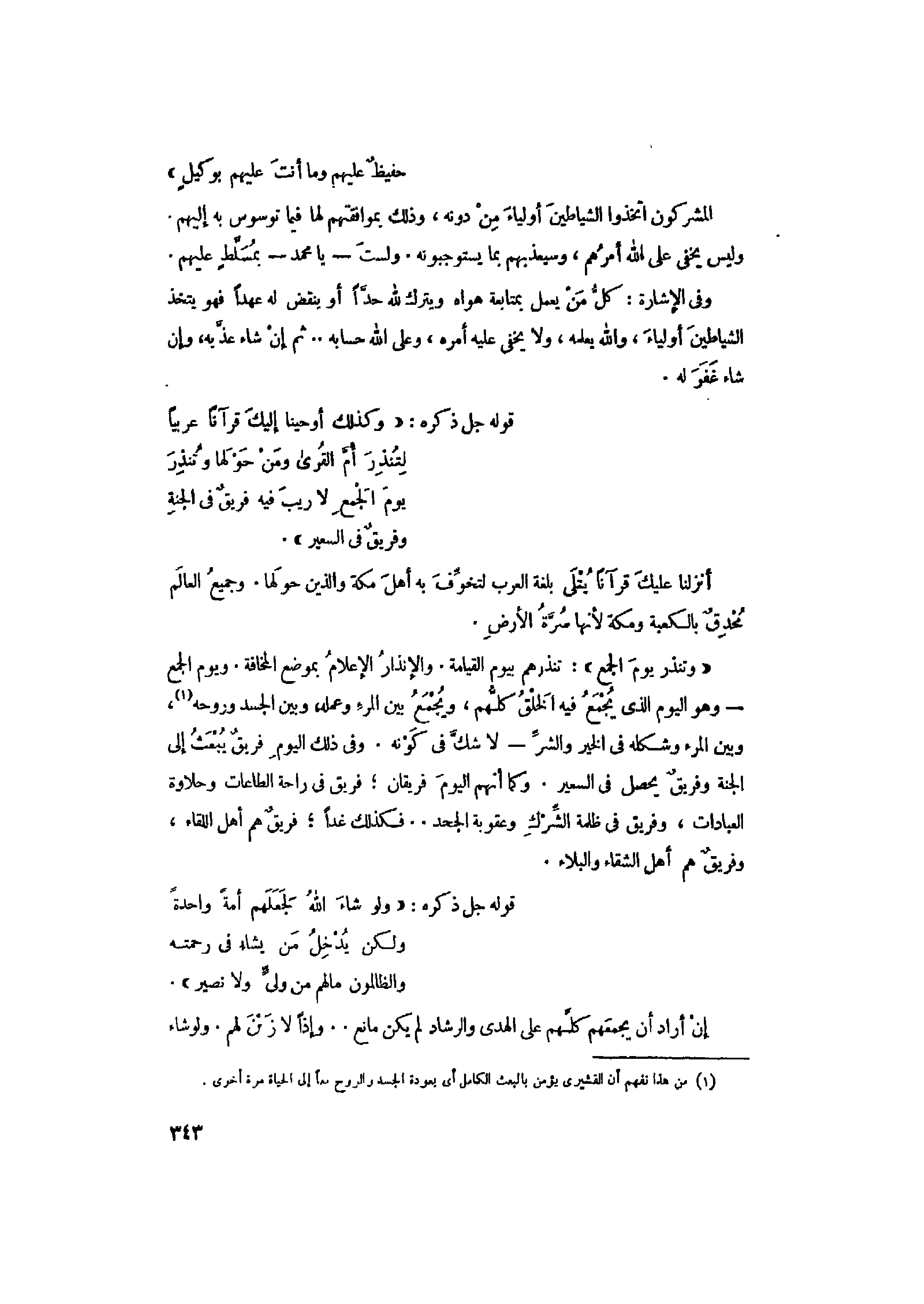 (1) من هذا نفهم أن القشيري يؤمن بالبعث الكامل أي بعودة الجسد والروح معا إلى الحياة مرة أخرى.