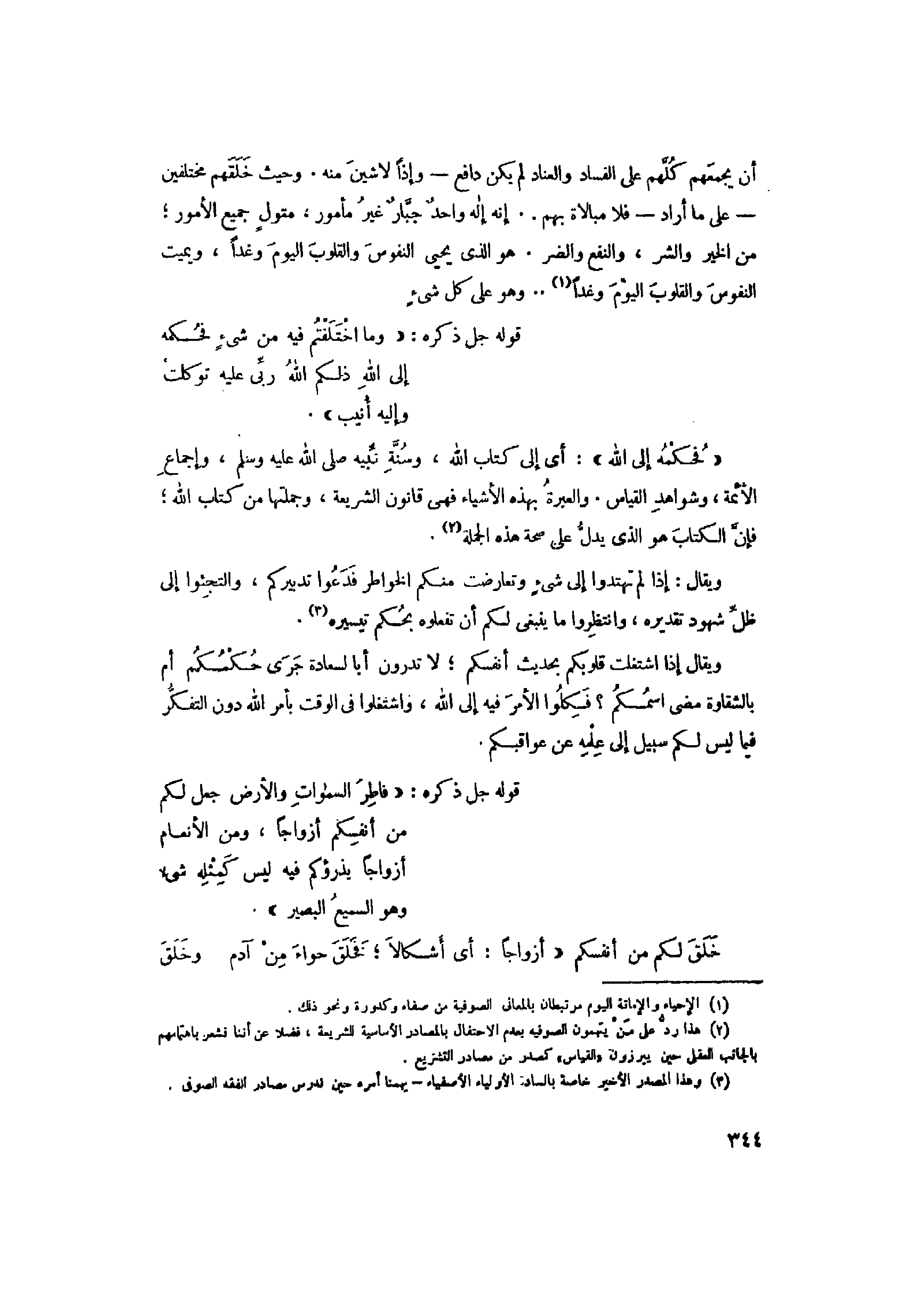 (2) هذا ردّ على من يتهمون الصوفية بعدم الاحتفال بالمصادر الأساسية للشريعة، فضلا عن أننا نشعر باهتمامهم بالجانب العقلي حين يبرزون «القياس» كمصدر من مصادر التشريع. [.....]