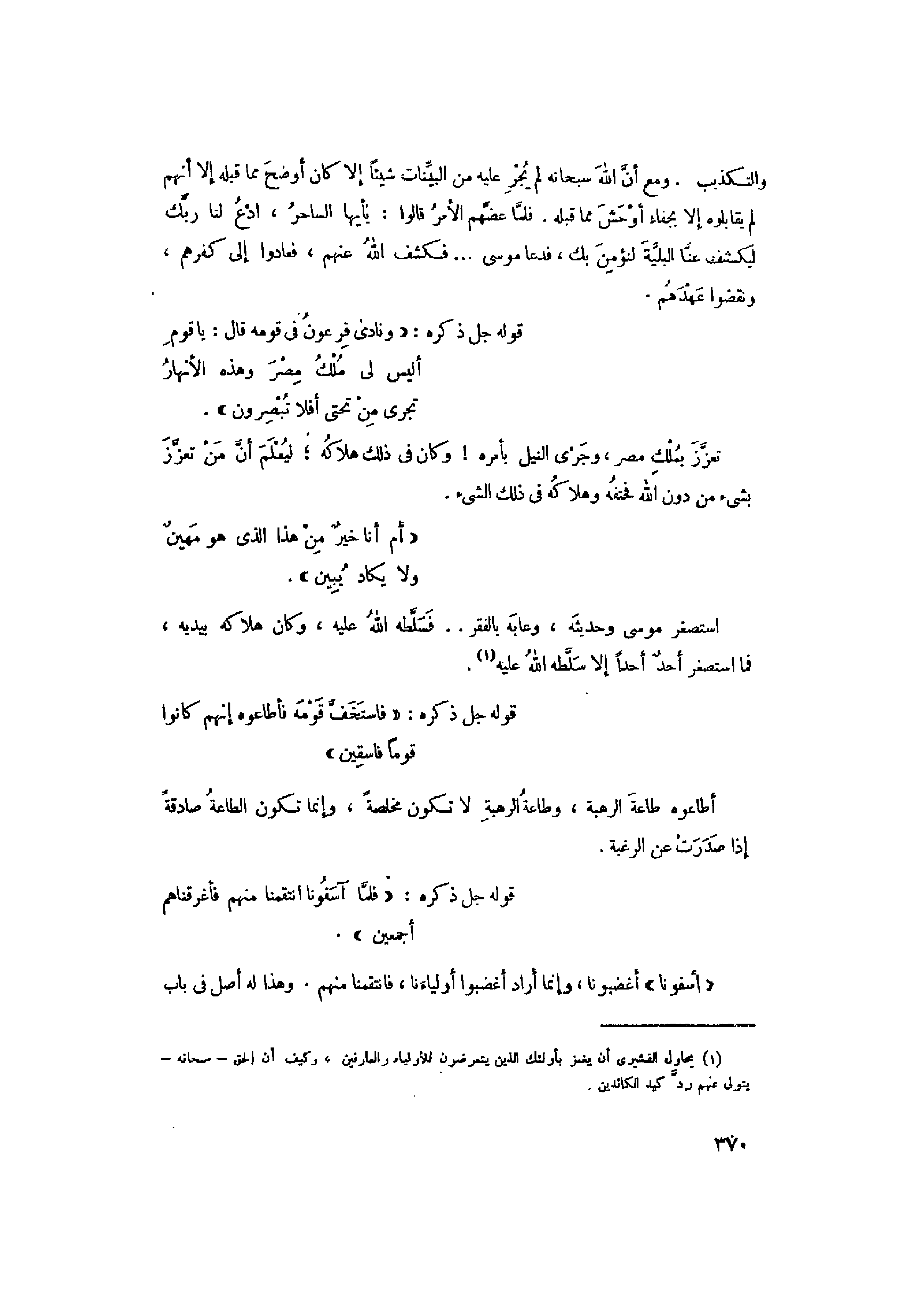 (1) يحاول القشيري أن يغمز بأولئك الذين يتعرضون للأولياء والعارفين، وكيف أن الحق- سبحانه- يتولى عنهم ردّ كيد الكائدين.