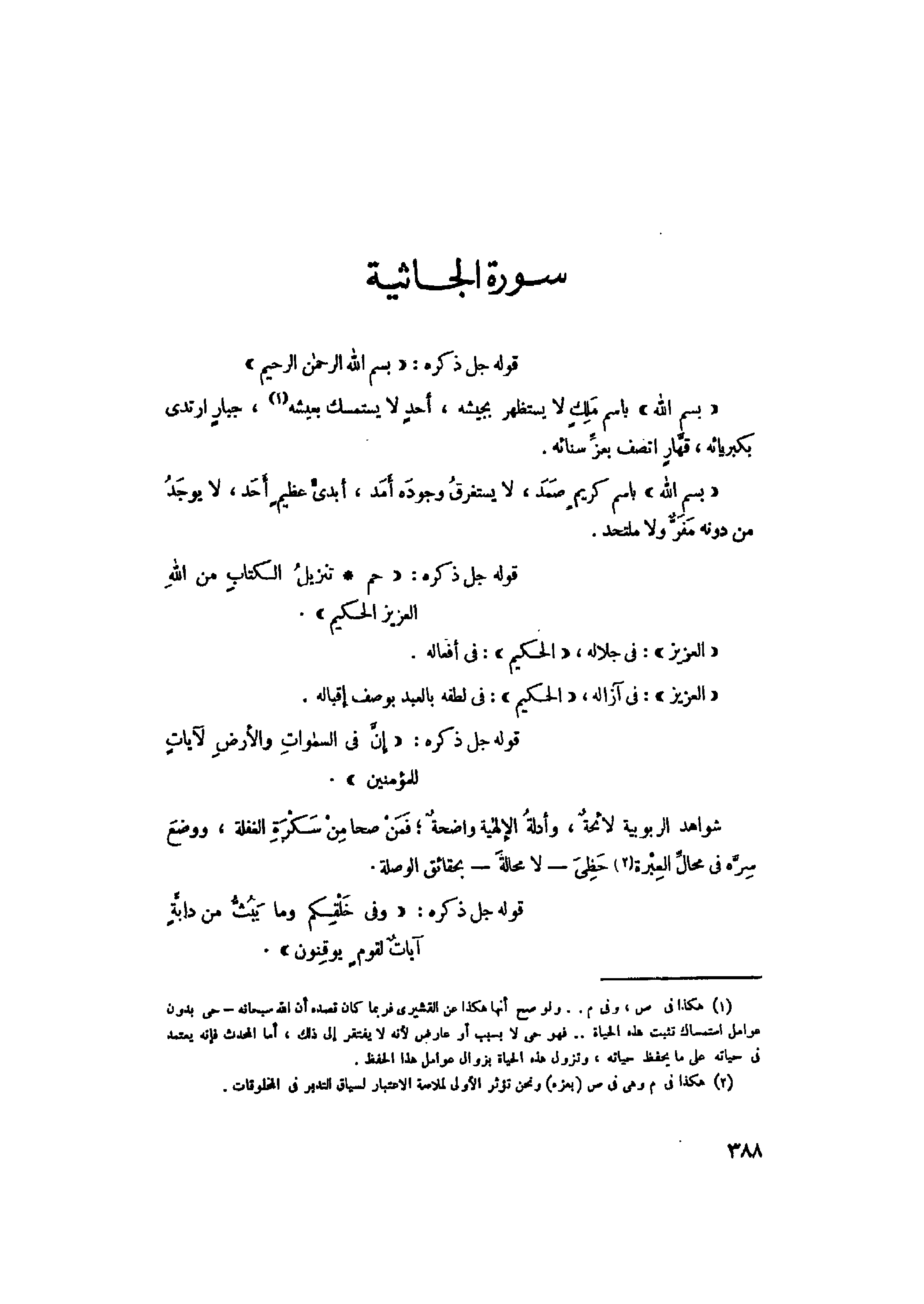 «بِسْمِ اللَّهِ» باسم كريم صمد، لا يستغرق وجوده أمد، أبدىّ عظيم أحد، لا يوجد من دونه مفرّ ولا ملتحد.