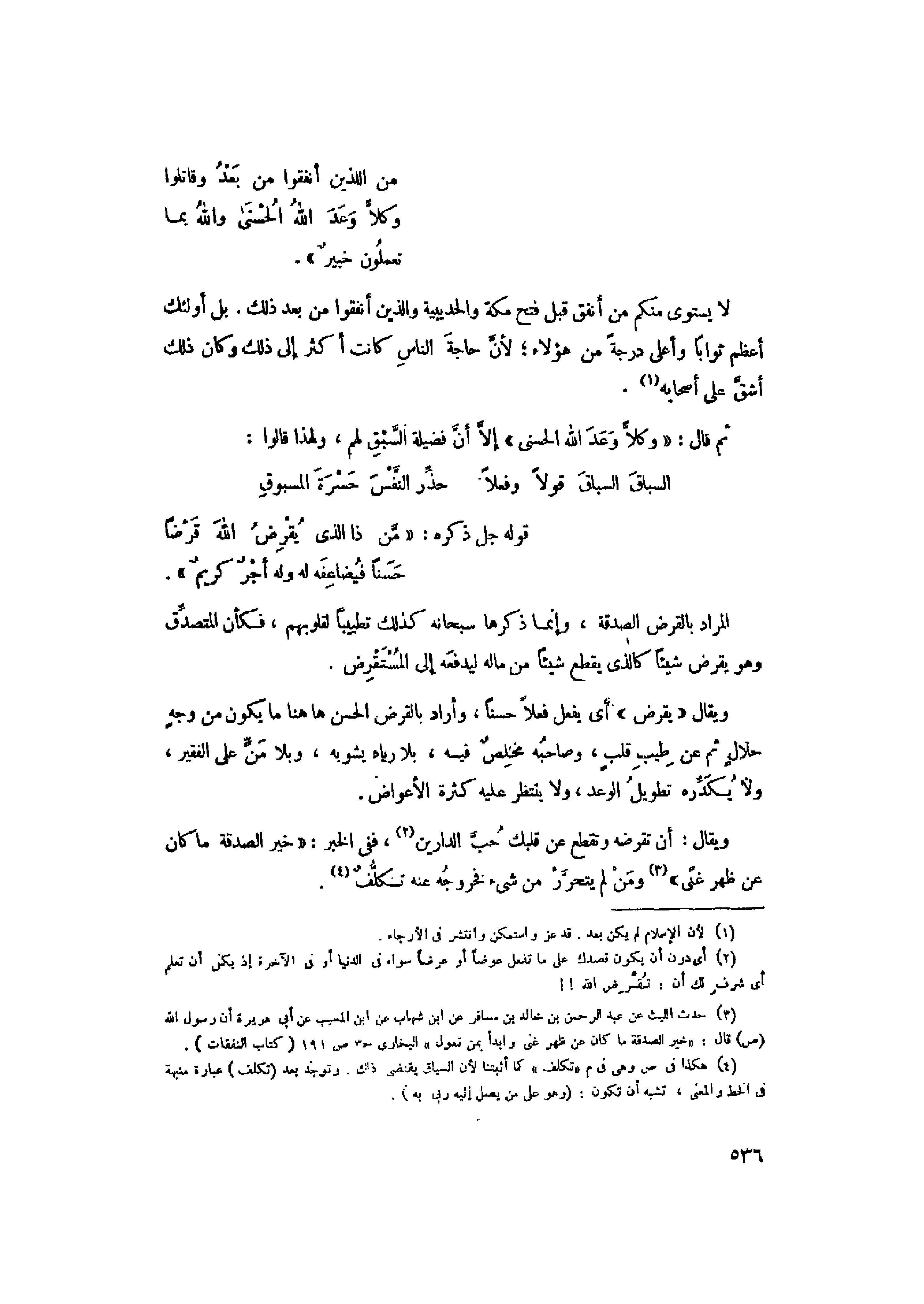 مِنَ الَّذِينَ أَنْفَقُوا مِنْ بَعْدُ وَقاتَلُوا وَكُلًّا وَعَدَ اللَّهُ الْحُسْنى وَاللَّهُ بِما تَعْمَلُونَ خَبِيرٌ» .