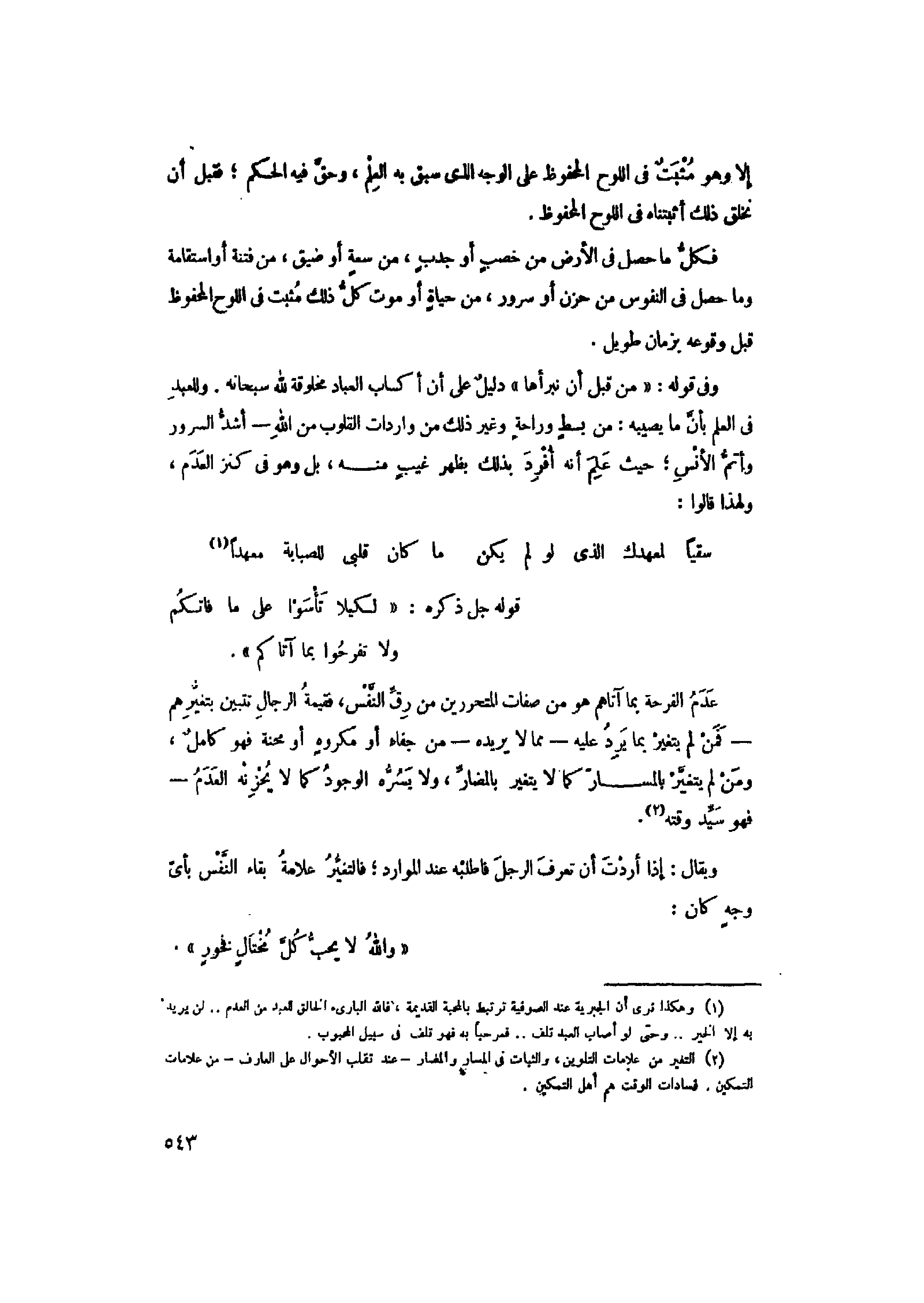 (1) وهكذا نرى أن الجبرية عند الصوفية ترتبط بالمحبة القديمة، فالله البارئ الخالق للعبد من العدم.. لن يريد به إلا الخير ... وحتى لو أصاب العبد تلف ... فمرحبا به فهو تلف في سبيل المحبوب.