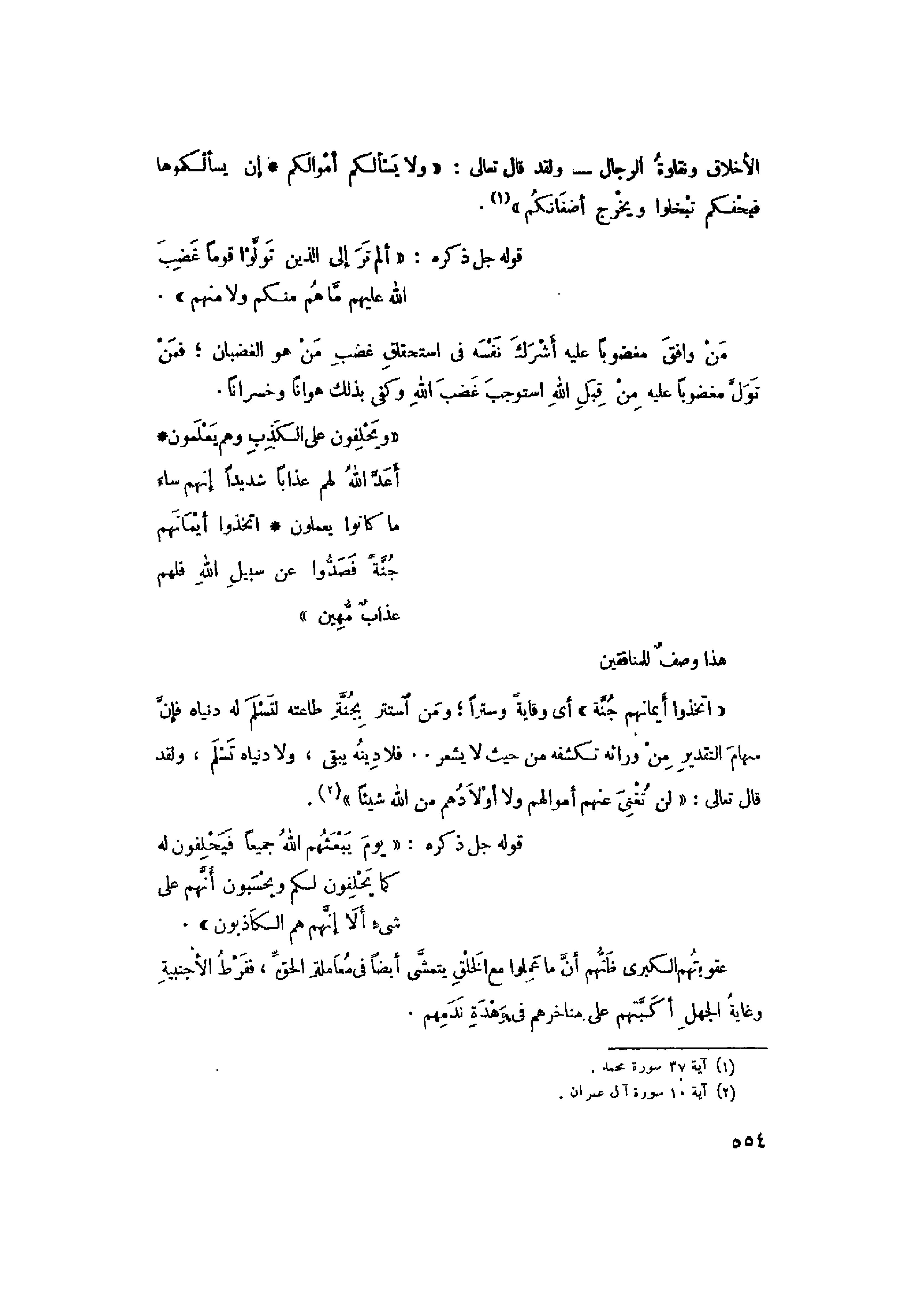 الأخلاق ونقاوة الرجال- ولقد قال تعالى: «وَلا يَسْئَلْكُمْ أَمْوالَكُمْ إِنْ يَسْئَلْكُمُوها فَيُحْفِكُمْ تَبْخَلُوا وَيُخْرِجْ أَضْغانَكُمْ» «1» .