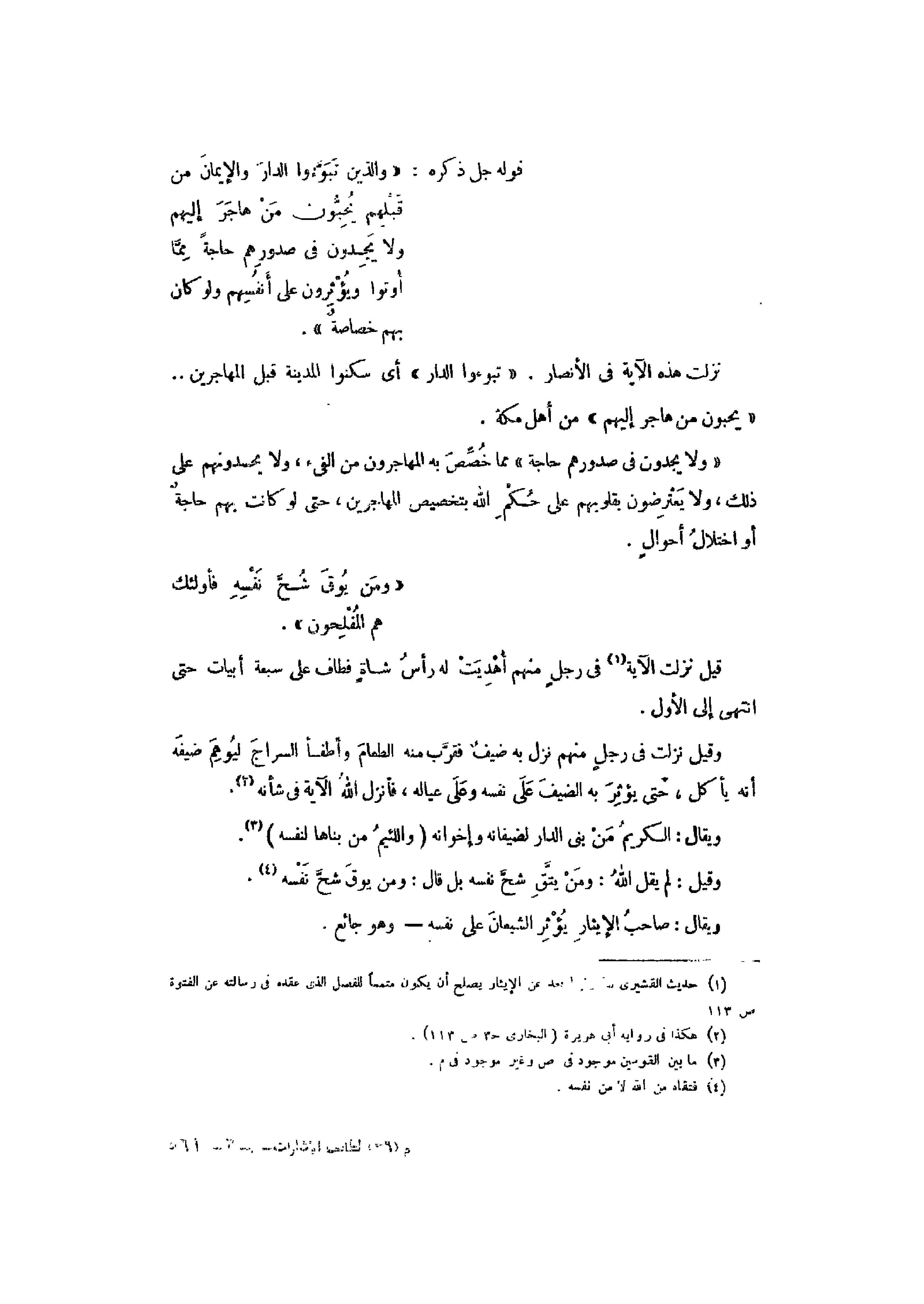 (1) حديث القشيري عنه وفيما بعد عن الإيثار يصلح أن يكون متمما للفصل الذي عقده في رسالته عن الفتوة ص 113.