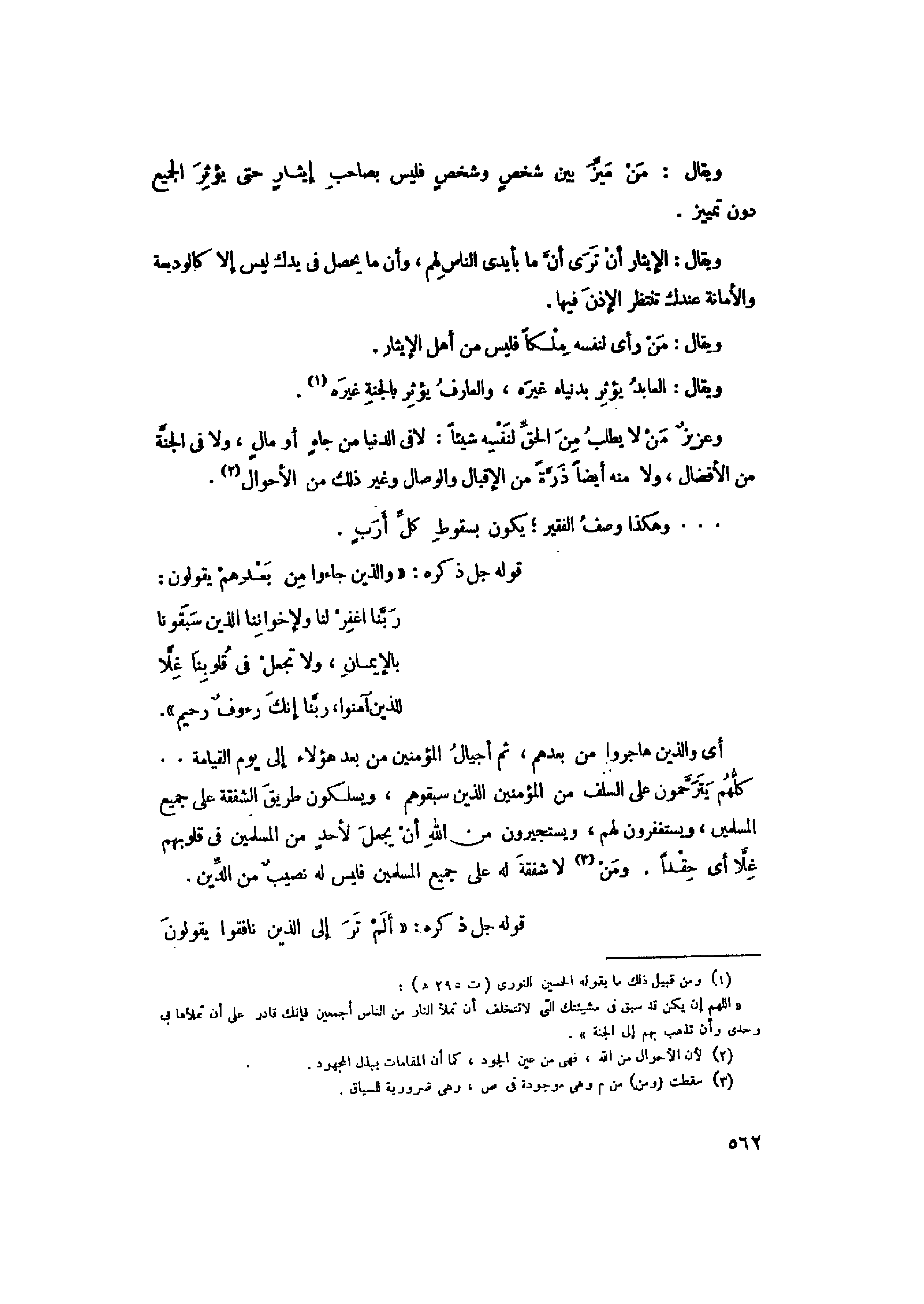 (1) ومن قبيل ذلك ما يقوله له الحسين النوري (ت 295 هـ) :