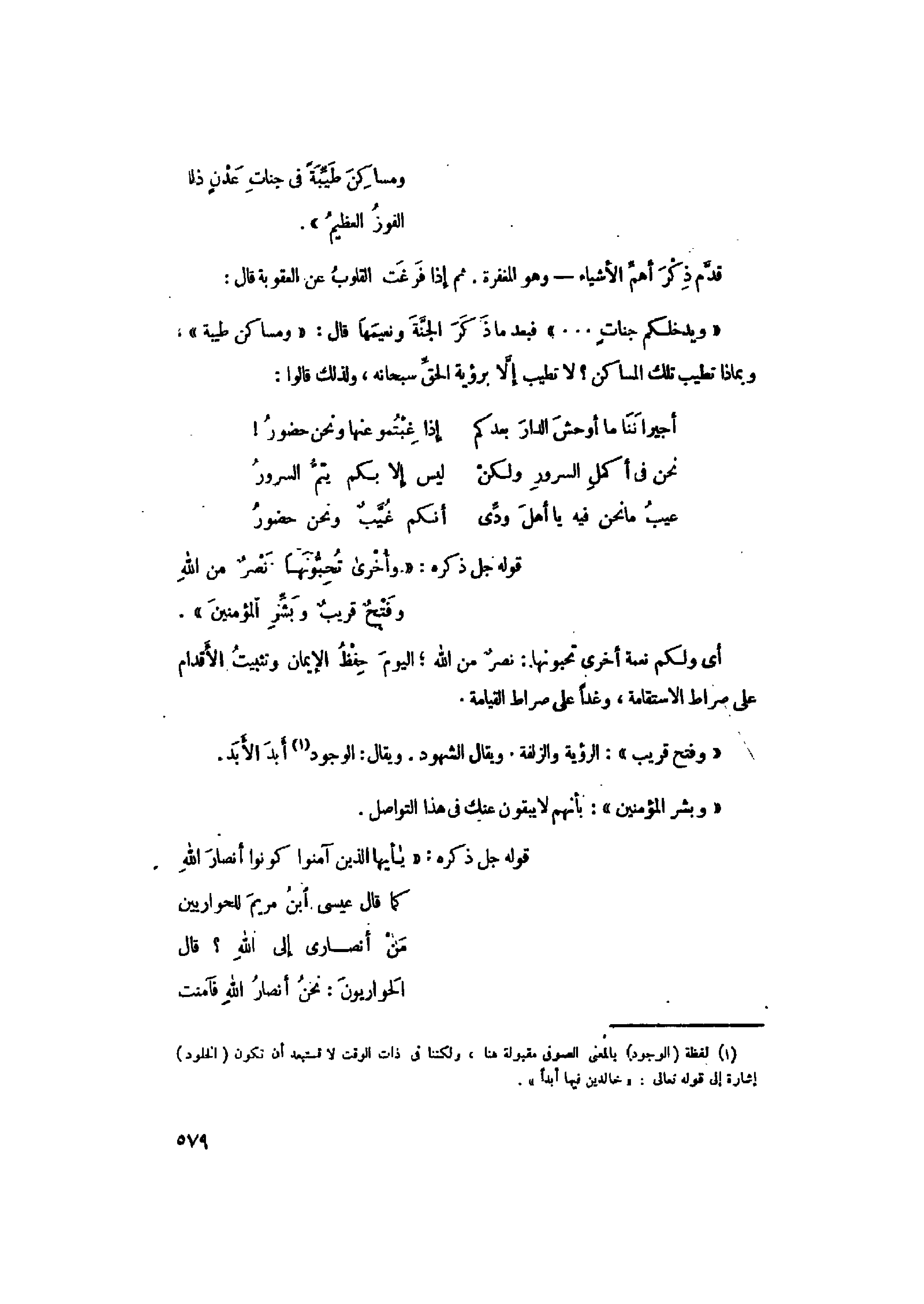 (1) لفظة (الوجود) بالمعنى الصوفي مقبولة هنا، ولكننا في ذات الوقت لا نستبعد أن تكون (الخلود) إشارة إلى قوله تعالى: «خالِدِينَ فِيها أَبَداً» .