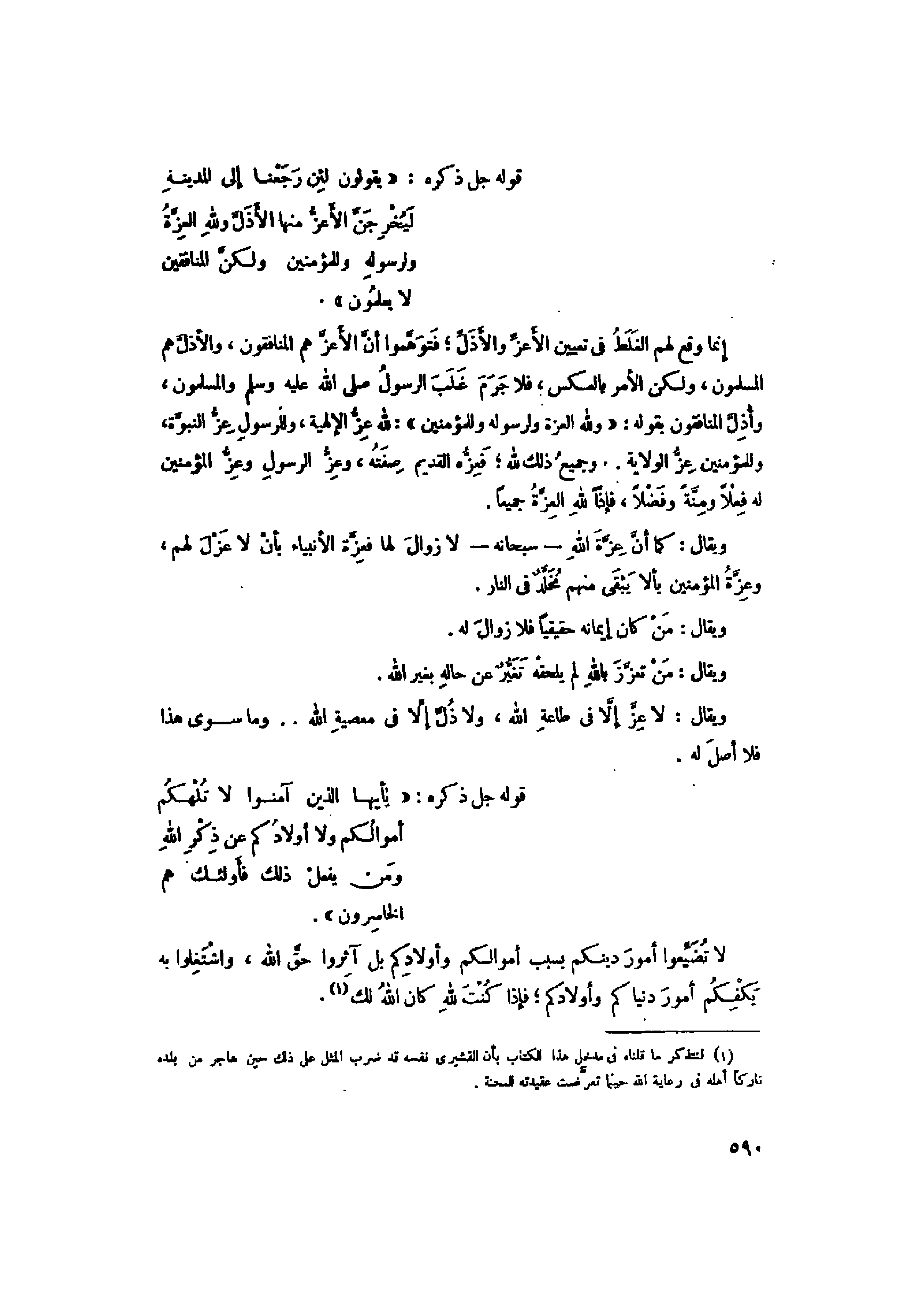 ويقال: لا عزّ إلّا في طاعة الله، ولا ذلّ إلّا في معصية الله ... وما سوى هذا فلا أصل له.
