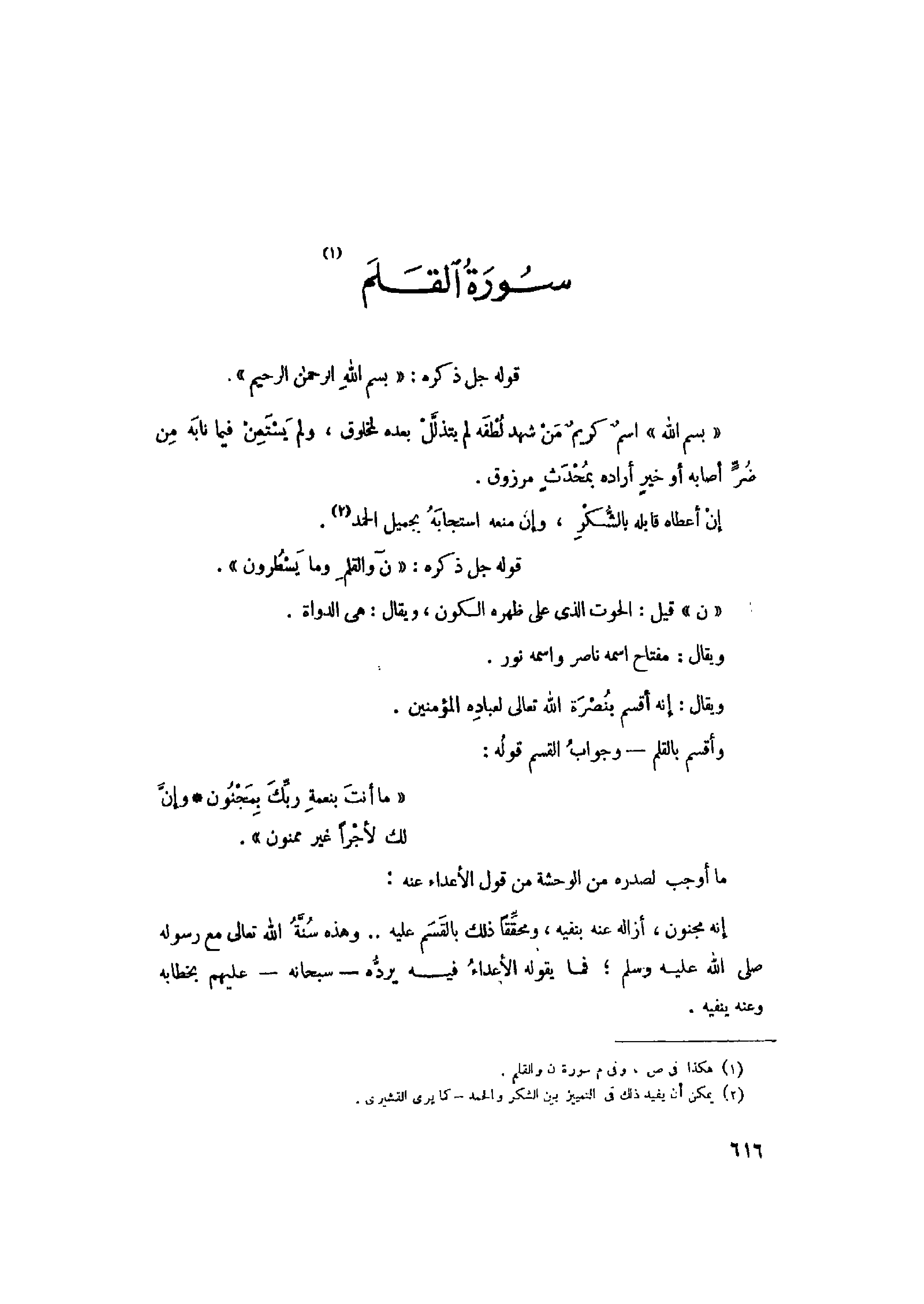 (1) هكذا في ص، وفي م سورة ن والقلم.