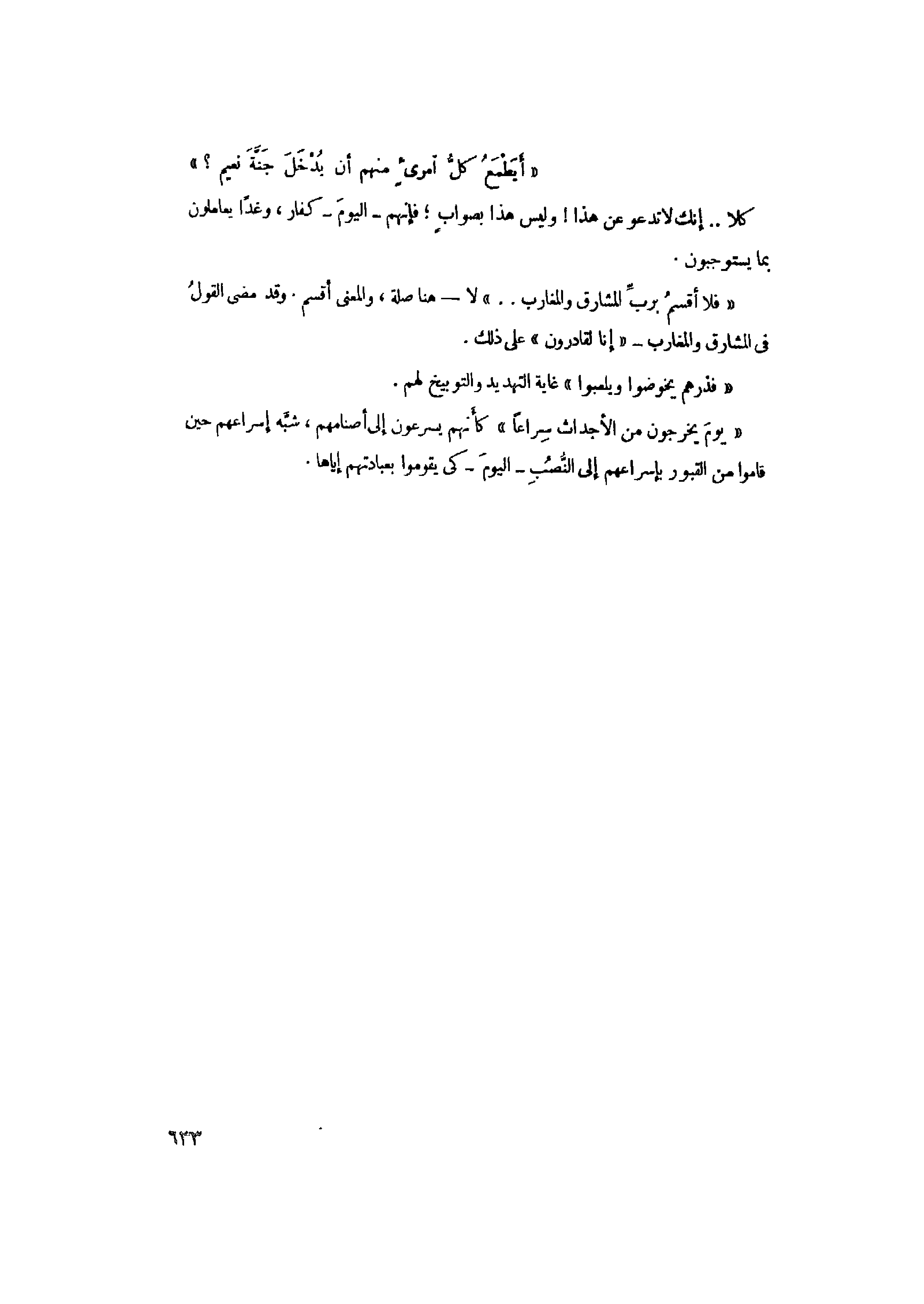 «يَوْمَ يَخْرُجُونَ مِنَ الْأَجْداثِ سِراعاً» كأنهم يسرعون إلى أصنامهم، شبّه إسراعهم حين قاموا من القبور بإسراعهم إلى النّصب- اليوم- كى يقوموا بعبادتهم إياها.