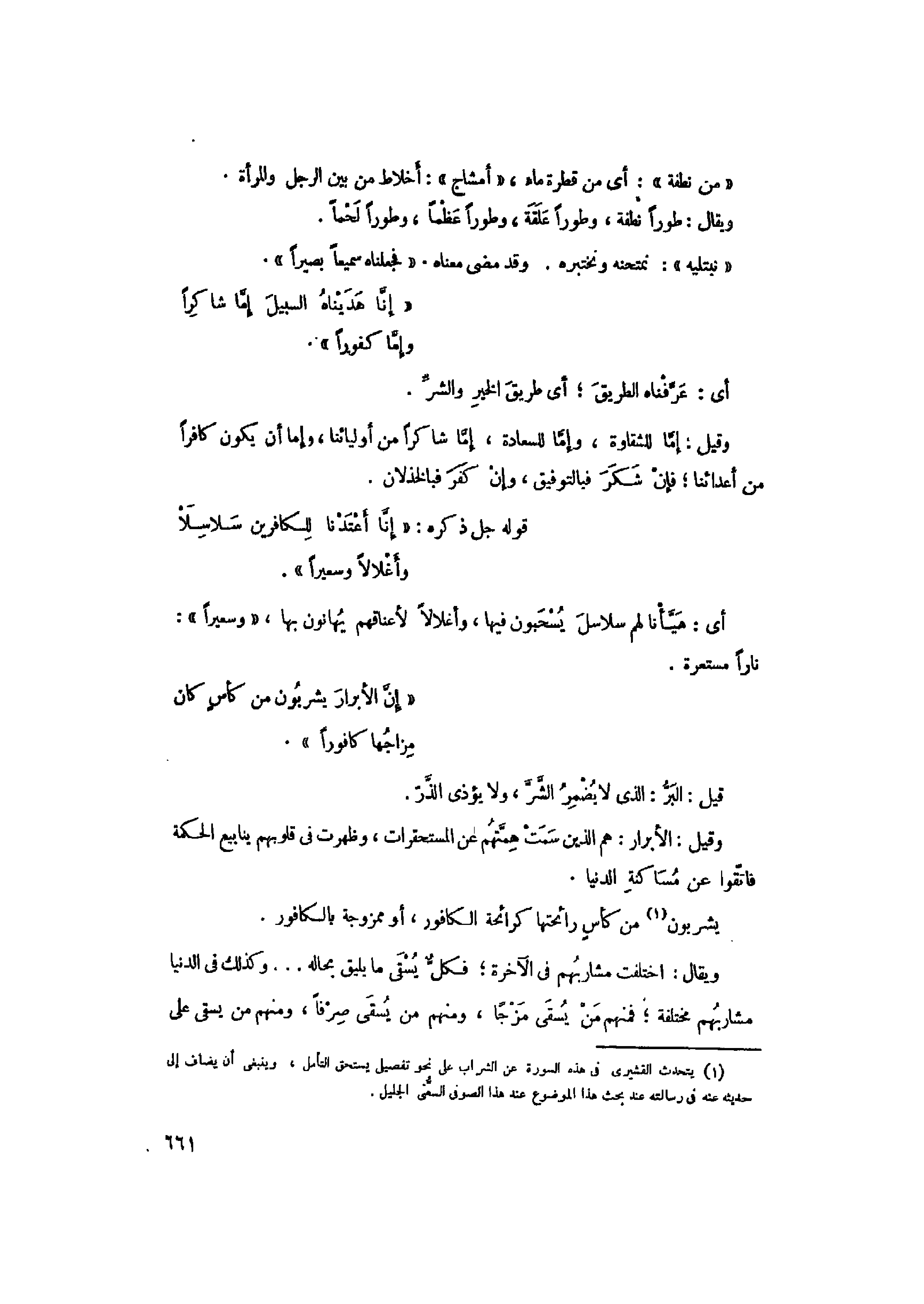 (1) يتحدث القشيري في هذه السورة عن الشراب على نحو تفصيلى يستحق التأمل، وينبغى أن يضاف إلى حديثه عنه في رسالته عند بحث هذا الموضوع عند هذا الصوفي السنّى الجليل.