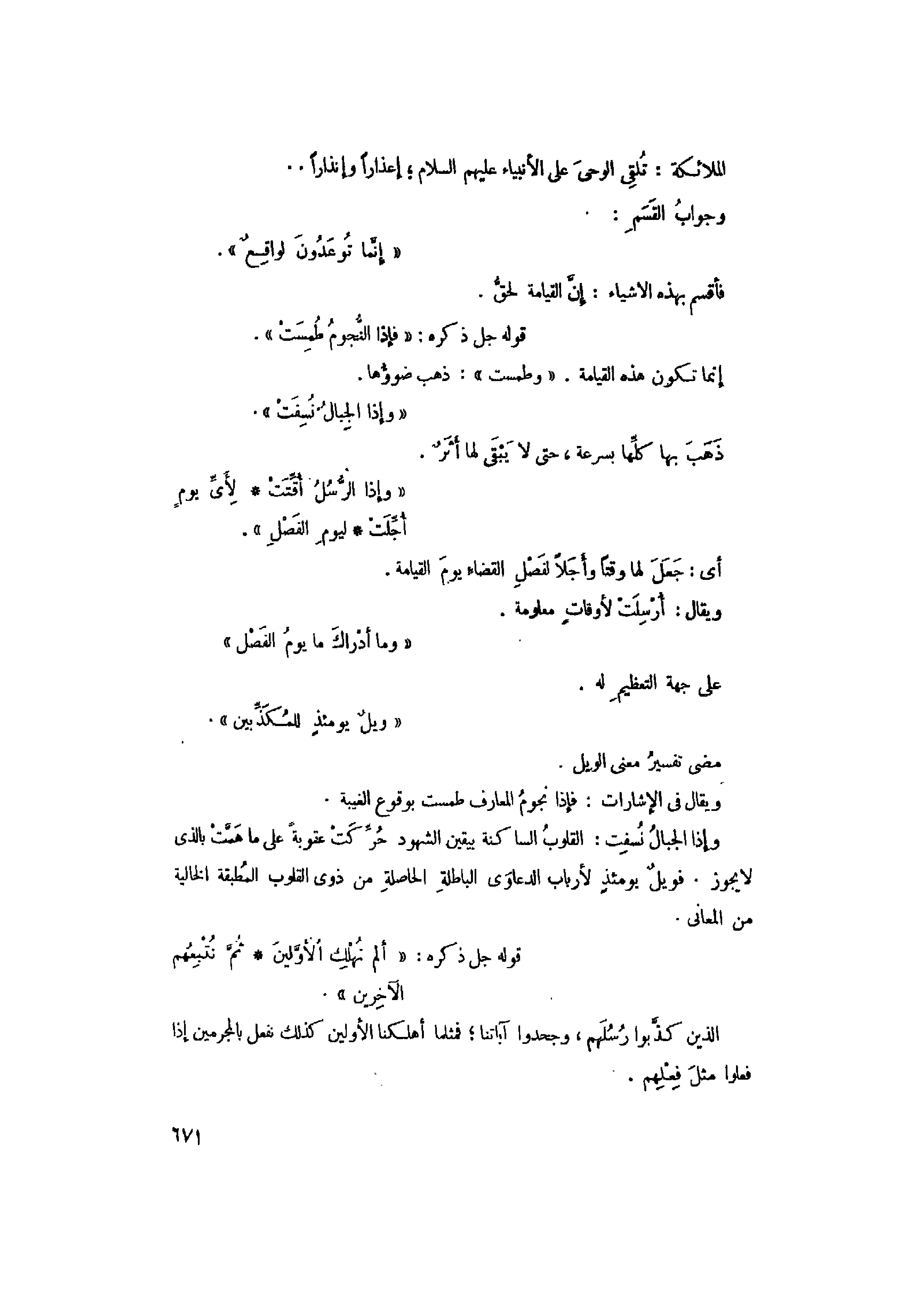 قوله جل ذكره: «فَإِذَا النُّجُومُ طُمِسَتْ» إنما تكون هذه القيامة. و «طُمِسَتْ» : ذهب ضوؤها.
