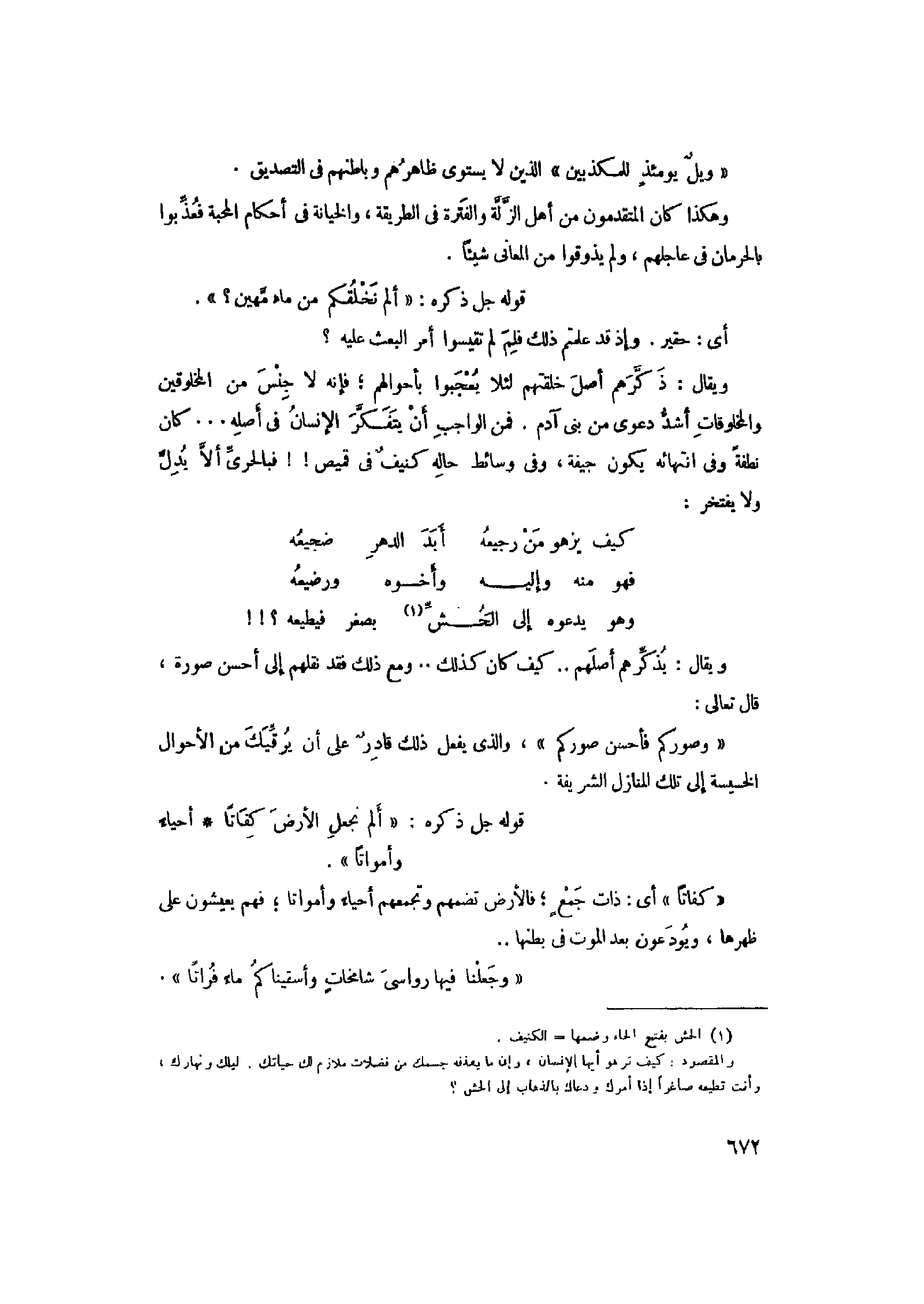 قوله جل ذكره: «أَلَمْ نَخْلُقْكُمْ مِنْ ماءٍ مَهِينٍ» ؟.