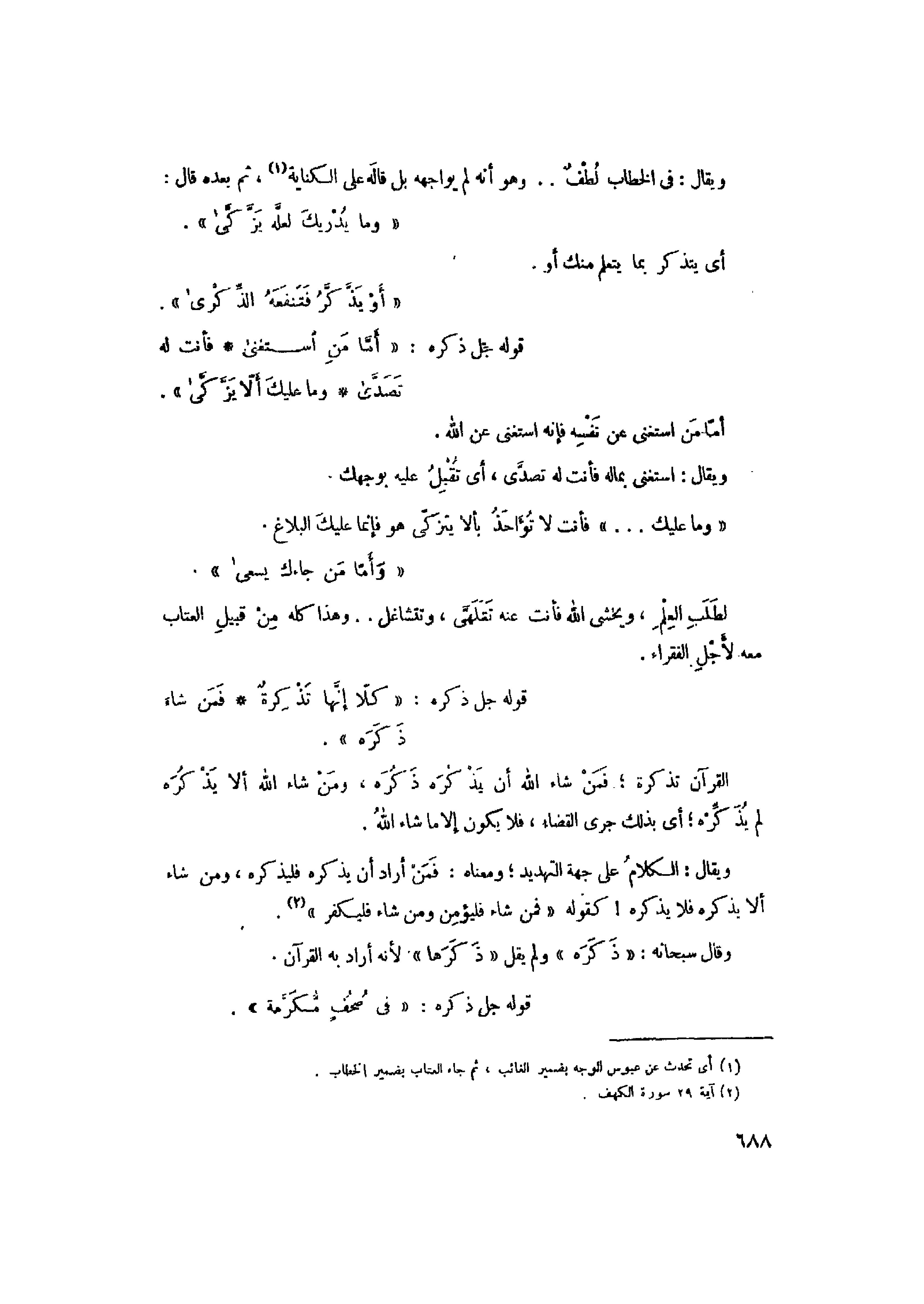 (1) أي تحدث عن عبوس الوجه بضمير الغائب، ثم جاء العتاب بضمير الخطاب.