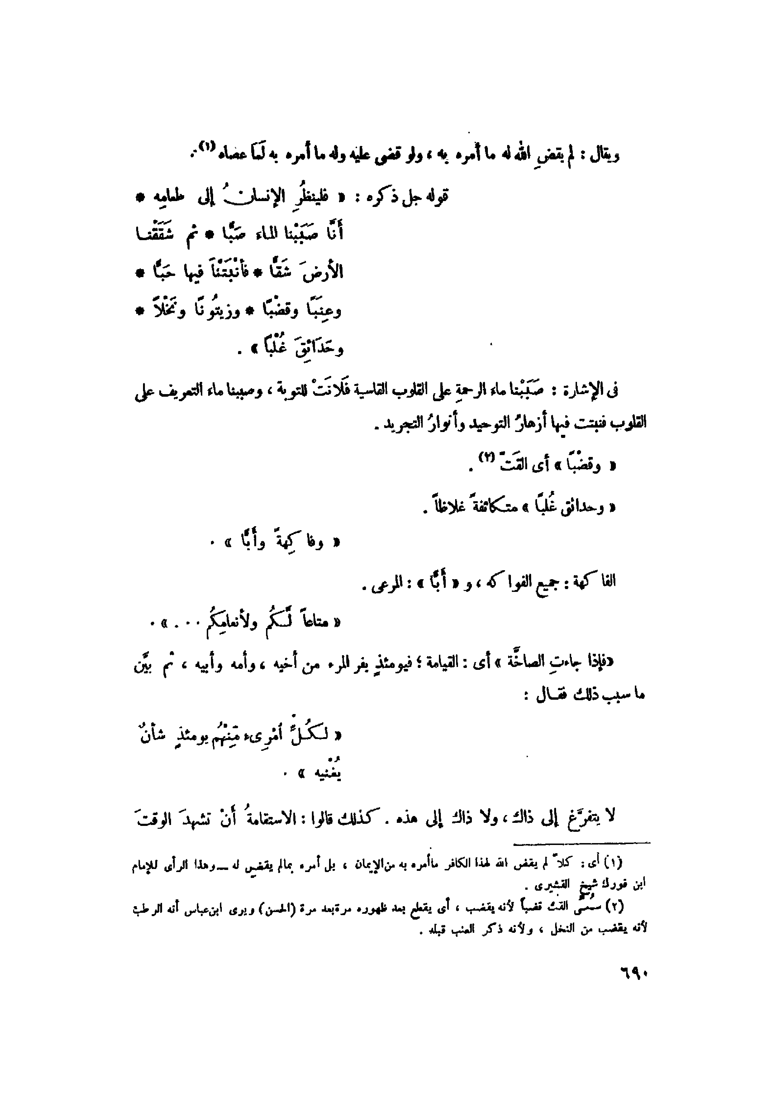 (2) سمىّ القت قضبا لأنه يقضب، أي يقطع بعد ظهوره مرة بعد مرة (الحسن) ويرى ابن عباس أنه الرطب لأنه يقضب من النخل، ولأنه ذكر العنب قبله.
