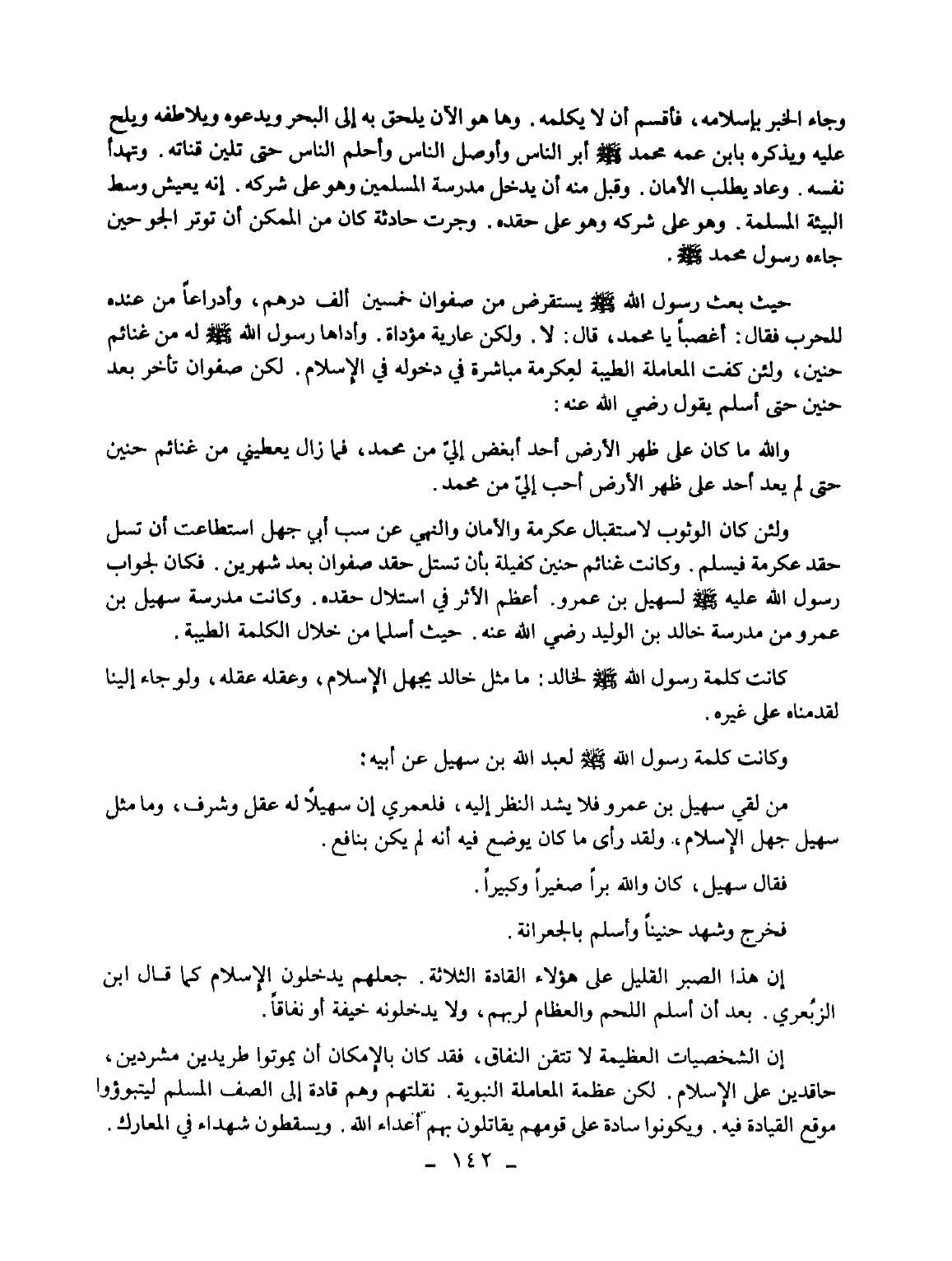 ولئن كان الوثوب لاستقبال عكرمة والأمان والنهي عن سب أبي جهل استطاعت أن تسل حقد عكرمة فيسلم. وكانت غنائم حنين كفيلة بأن تستل حقد صفوان بعد شهرين. فكان لجواب رسول الله عليه - صلى الله عليه وسلم - لسهيل بن عمرو. أعظم الأثر في استلال حقده. وكانت مدرسة سهيل بن عمرو من مدرسة خالد بن الوليد رضي الله عنه. حيث أسلما من خلال الكلمة الطيبة.