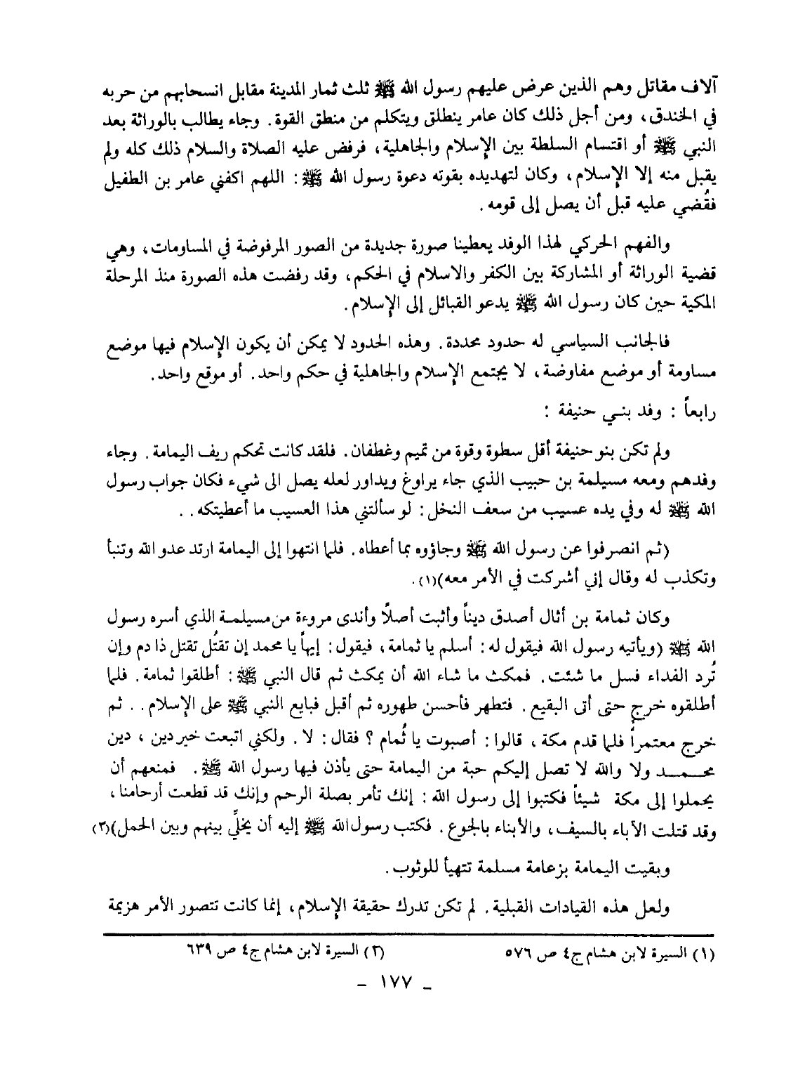 ولعل هذه القيادات القبلية. لم تكن تدرك حقيقة الإسلام، إنما كانت تتصور الأمر هزيمة