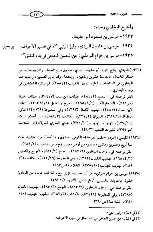 1934- موسى بن هارون البردي، وقيل البنيي في تفسير الأعراف.