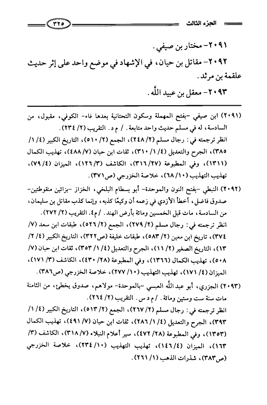 2092- مقاتل بن حيان، في الإشهاد في موضع واحد على إثر حديث علقمة بن مرثد.