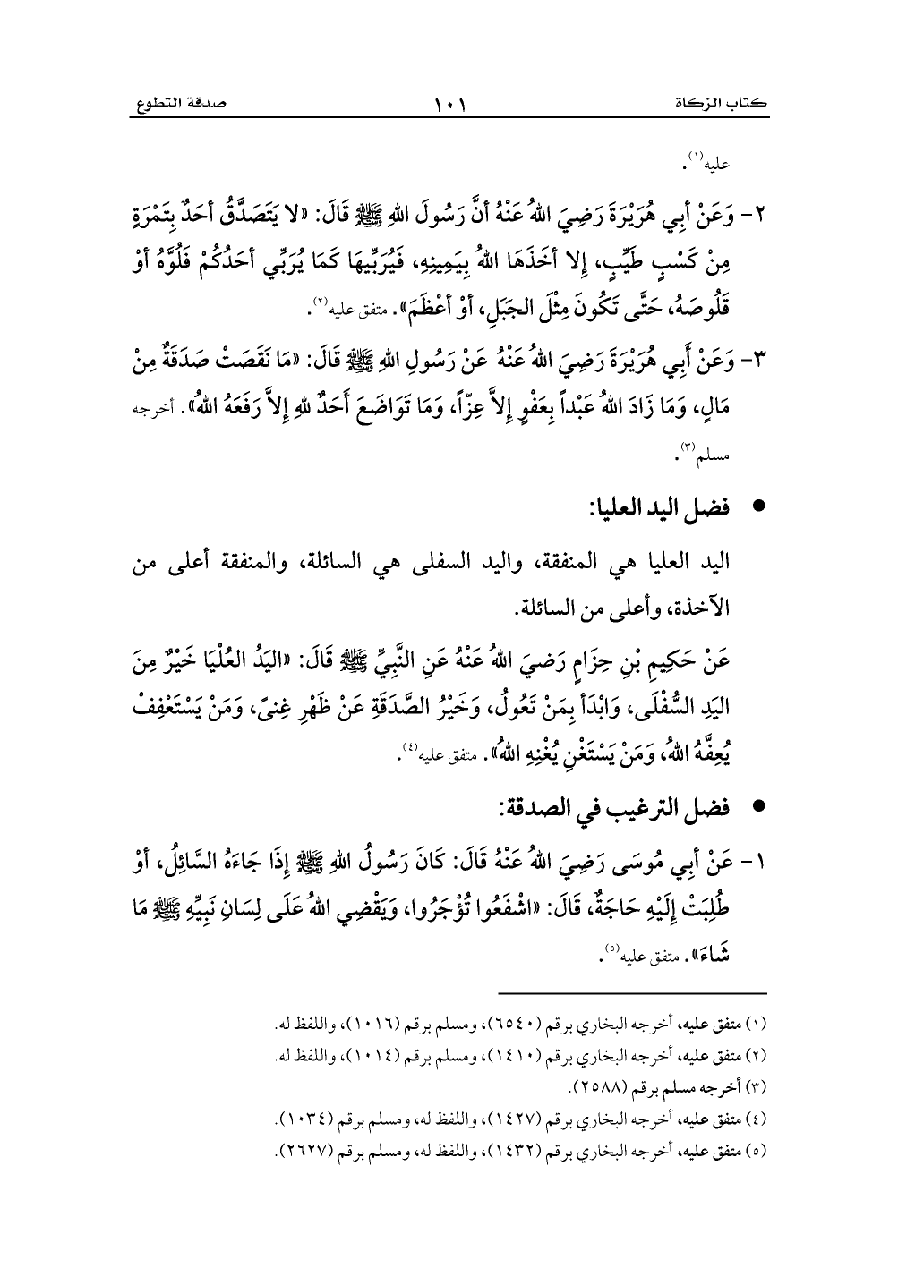 (¬5) متفق عليه، أخرجه البخاري برقم (1432) , واللفظ له، ومسلم برقم (2627).