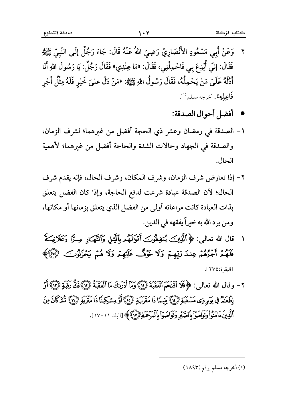 1 - الصدقة في رمضان وعشر ذي الحجة أفضل من غيرهما؛ لشرف الزمان، والصدقة في الجهاد وحالات الشدة والحاجة أفضل من غيرهما؛ لأهمية الحال.