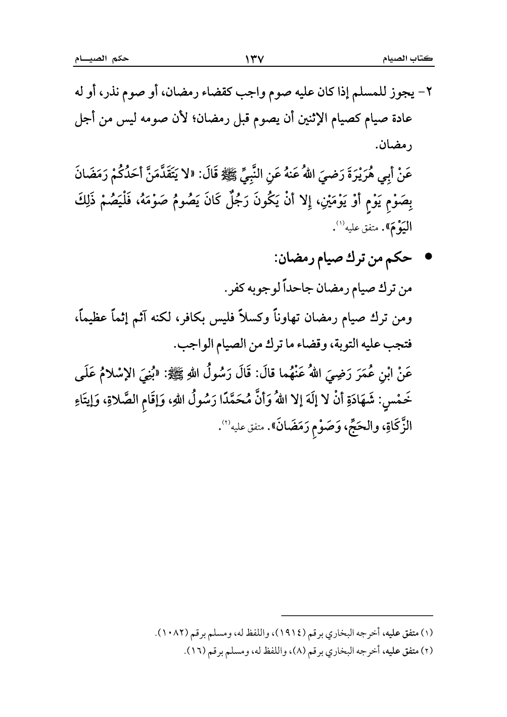 (¬1) متفق عليه، أخرجه البخاري برقم (1914) , واللفظ له، ومسلم برقم (1082).