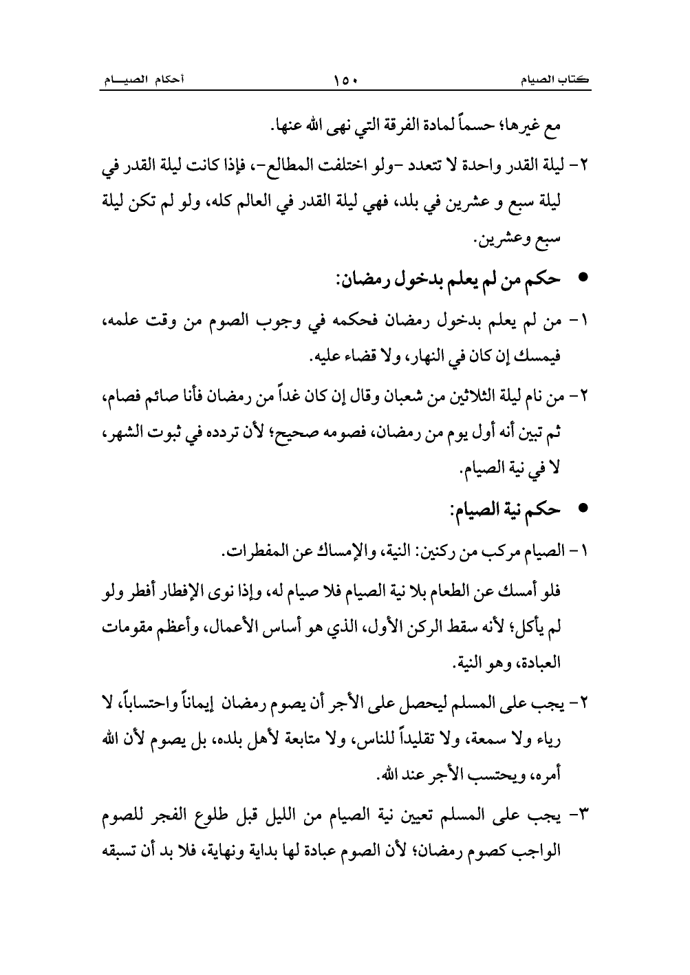 3 - يجب على المسلم تعيين نية الصيام من الليل قبل طلوع الفجر للصوم الواجب كصوم رمضان؛ لأن الصوم عبادة لها بداية ونهاية، فلا بد أن تسبقه
