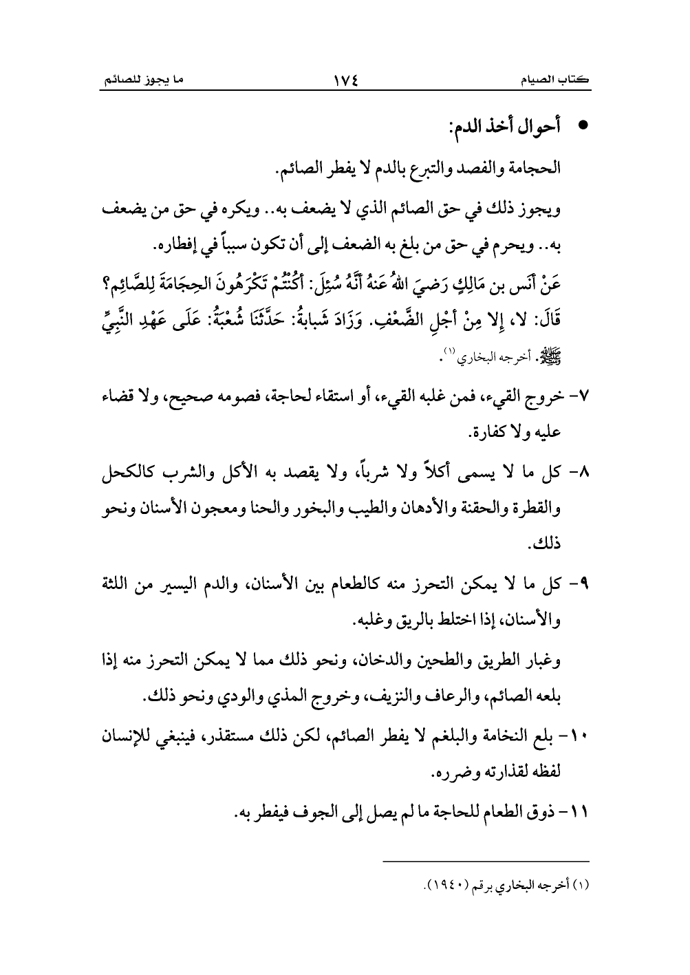 الحجامة والفصد والتبرع بالدم لا يفطر الصائم.