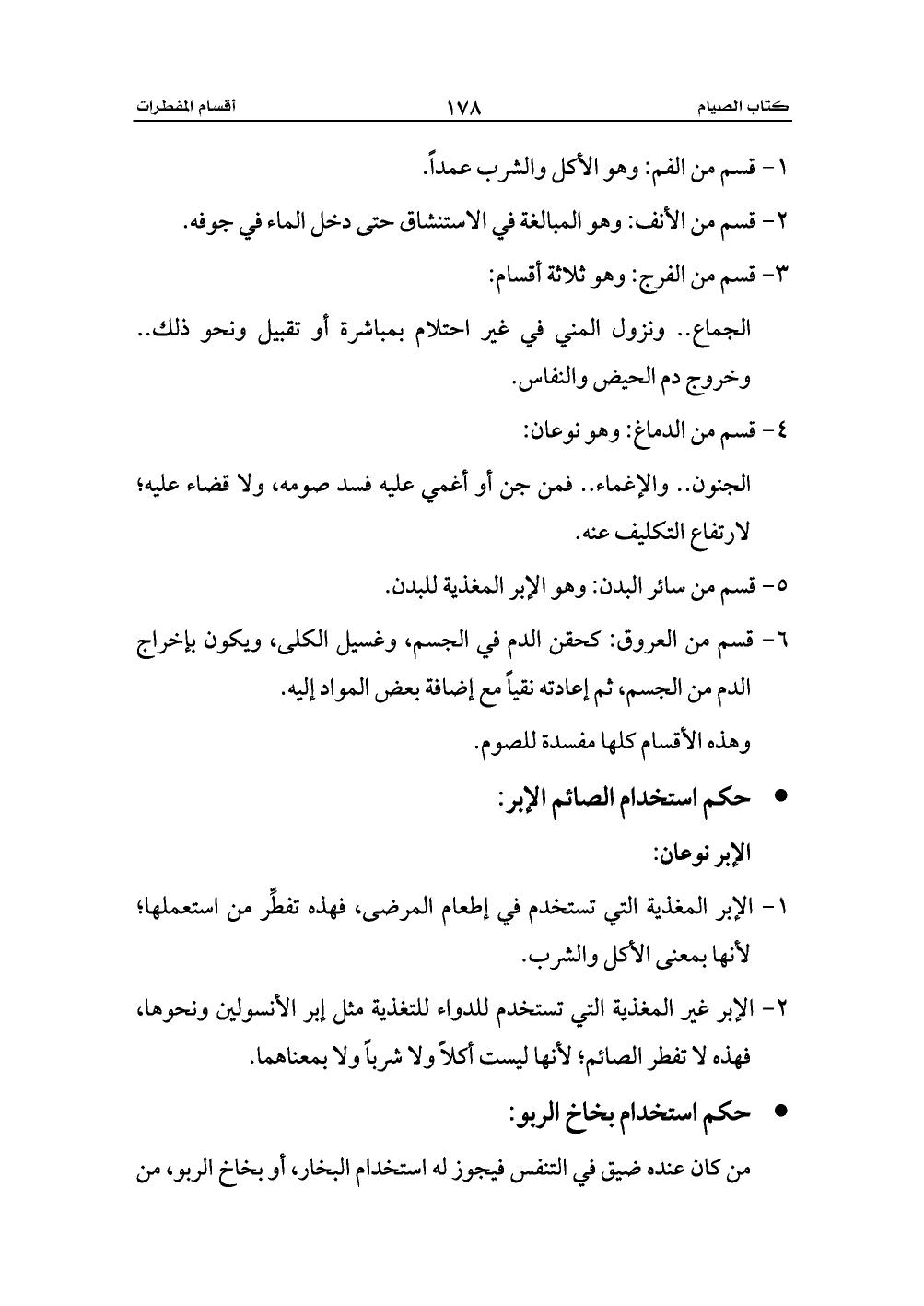 1 - الإبر المغذية التي تستخدم في إطعام المرضى، فهذه تفطِّر من استعملها؛ لأنها بمعنى الأكل والشرب.