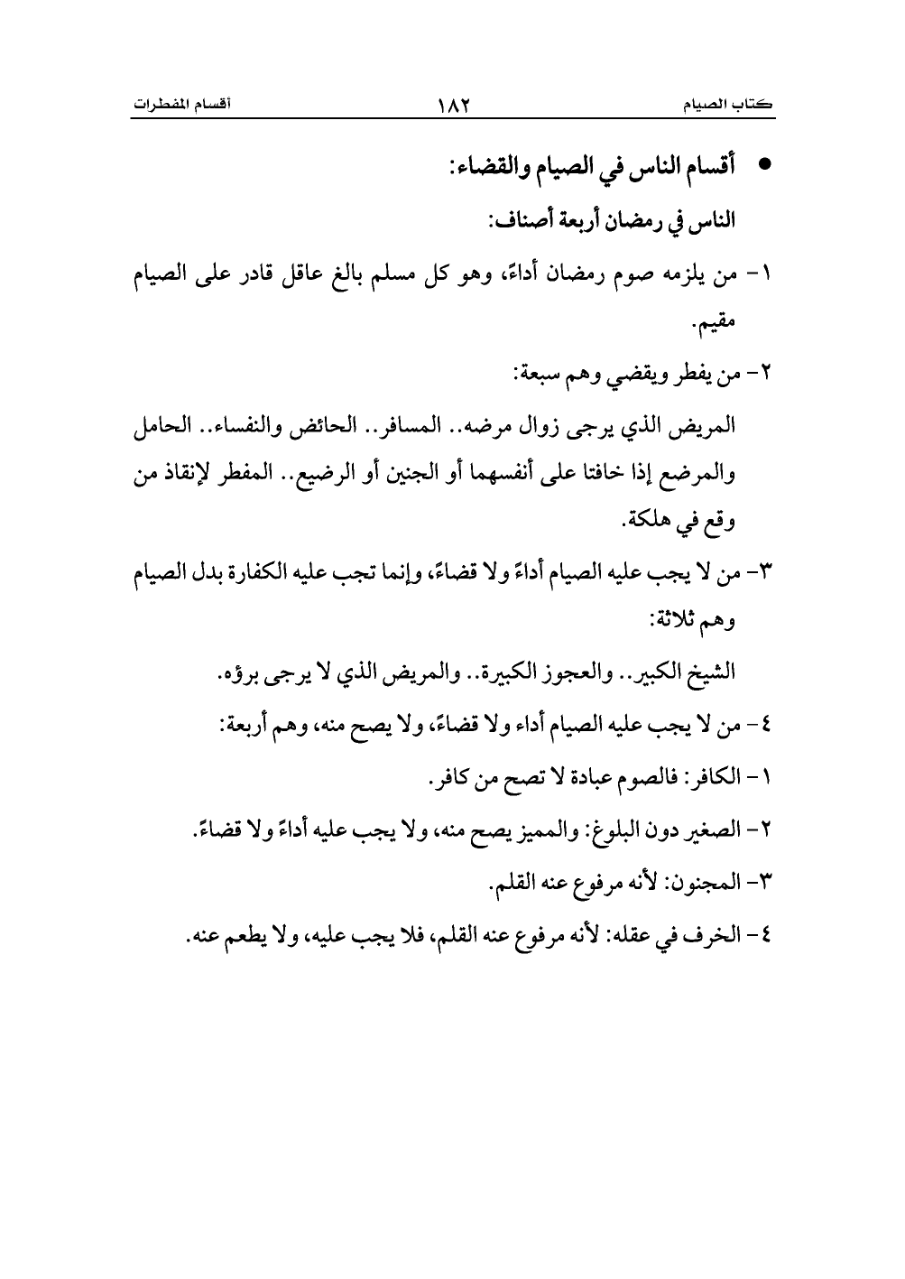 - أقسام الناس في الصيام والقضاء: