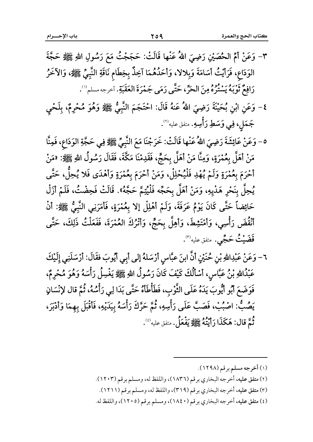 (¬4) متفق عليه، أخرجه البخاري برقم (1840) , ومسلم برقم (1205) , واللفظ له.