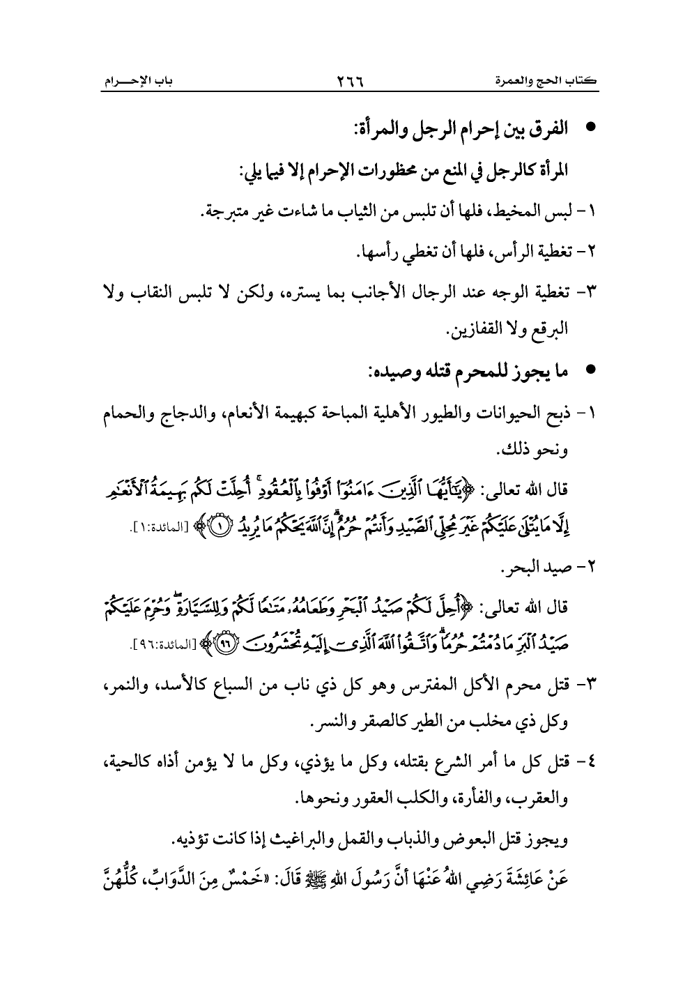 4 - قتل كل ما أمر الشرع بقتله، وكل ما يؤذي، وكل ما لا يؤمن أذاه كالحية، والعقرب، والفأرة، والكلب العقور ونحوها.