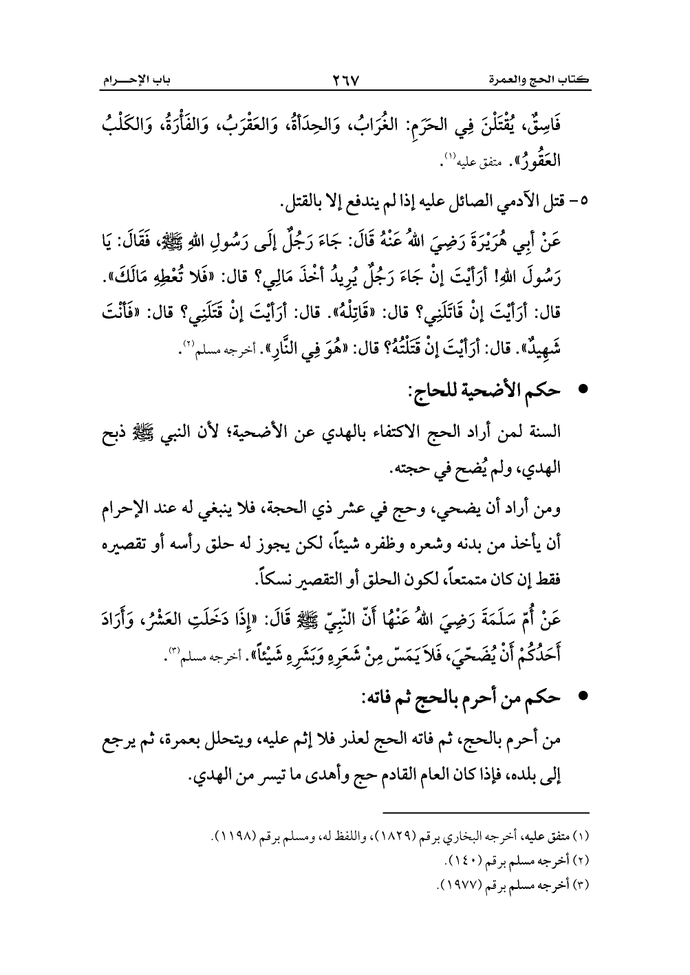 (¬1) متفق عليه، أخرجه البخاري برقم (1829) , واللفظ له، ومسلم برقم (1198).