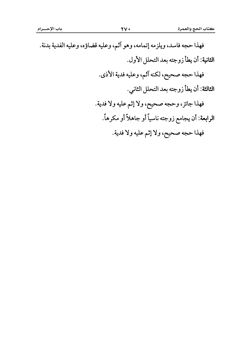 الثالثة: أن يطأ زوجته بعد التحلل الثاني.