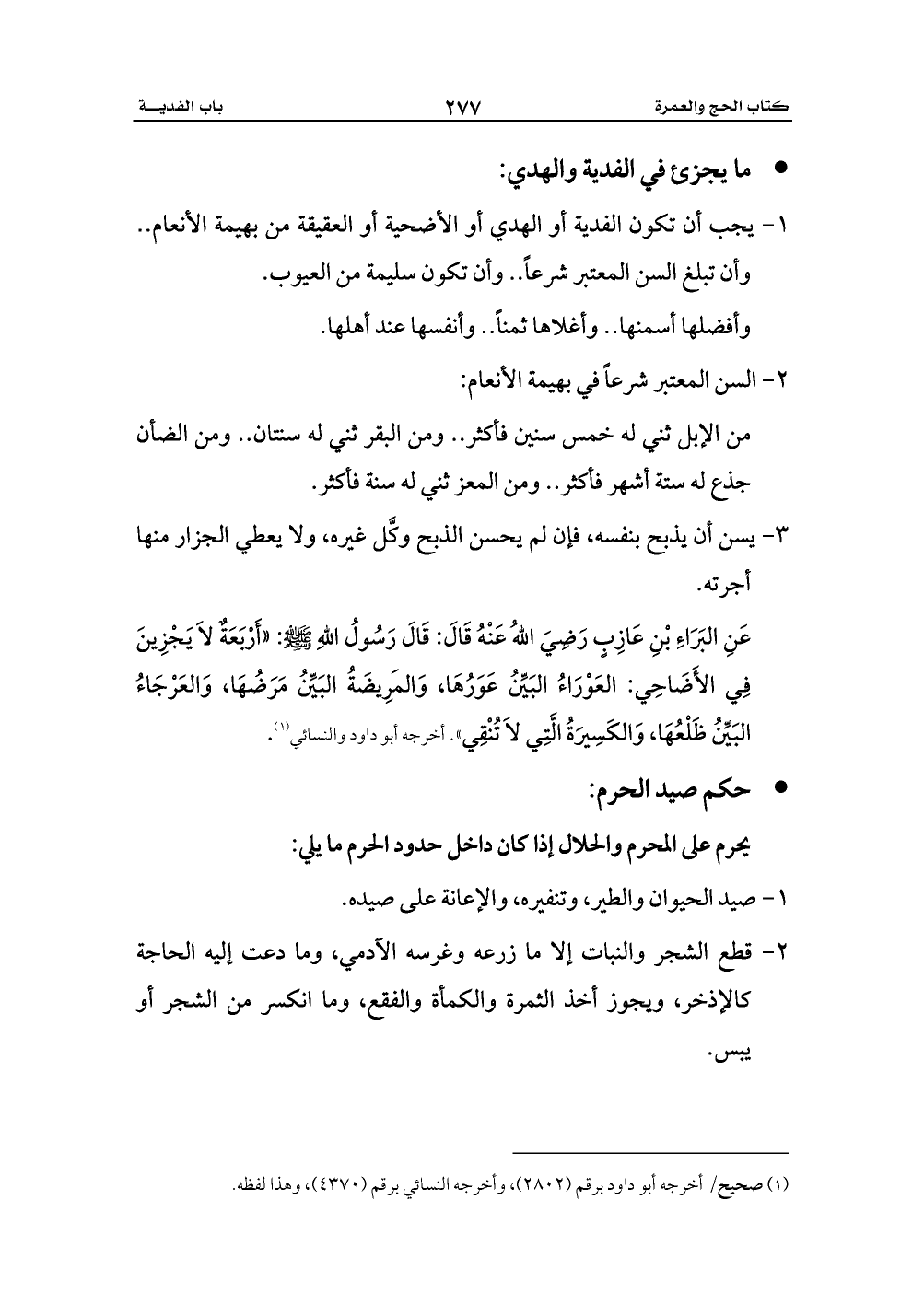1 - يجب أن تكون الفدية أو الهدي أو الأضحية أو العقيقة من بهيمة الأنعام .. وأن تبلغ السن المعتبر شرعاً .. وأن تكون سليمة من العيوب.